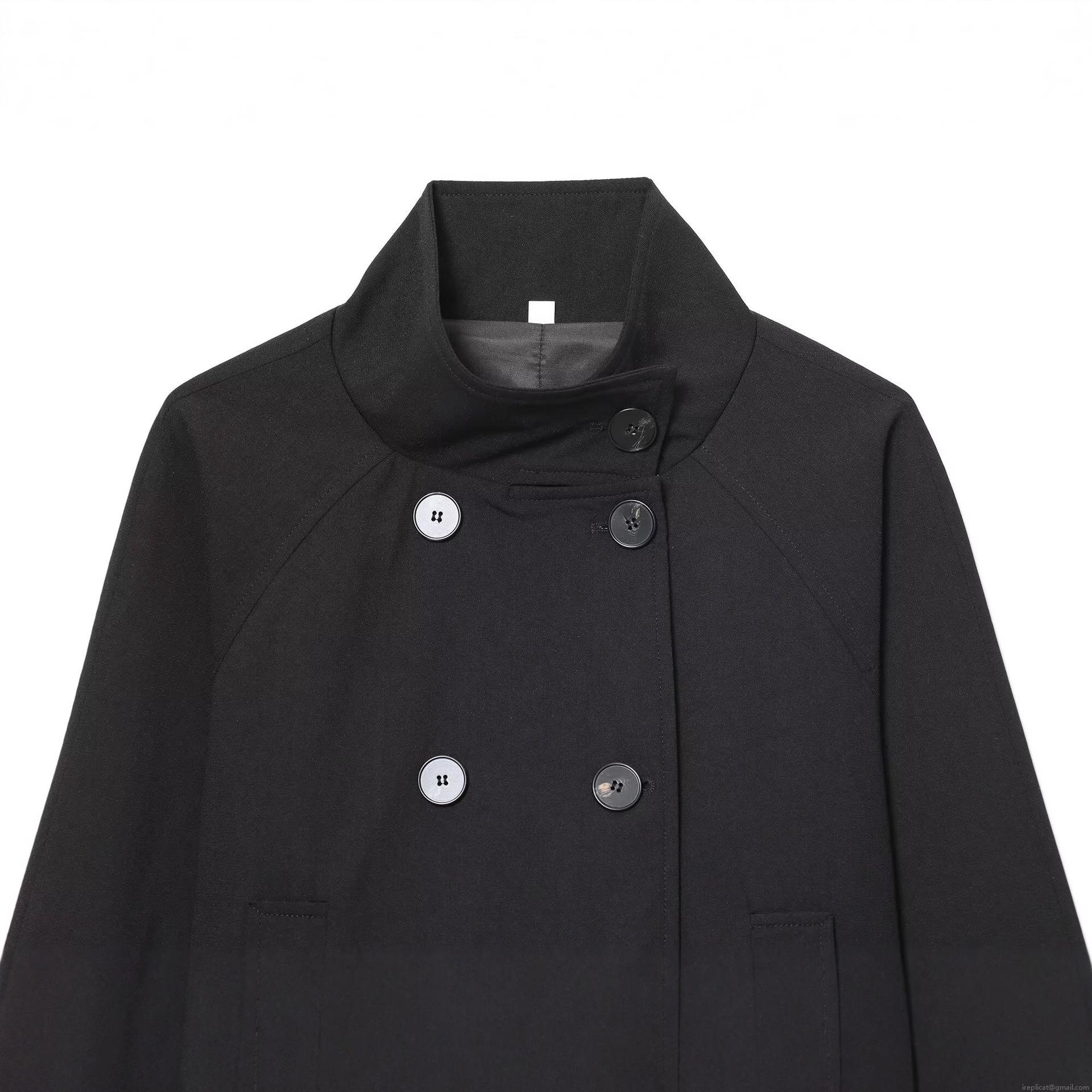 Solid Color, Stand-up Collar, Double-breasted, Wide Sleeves