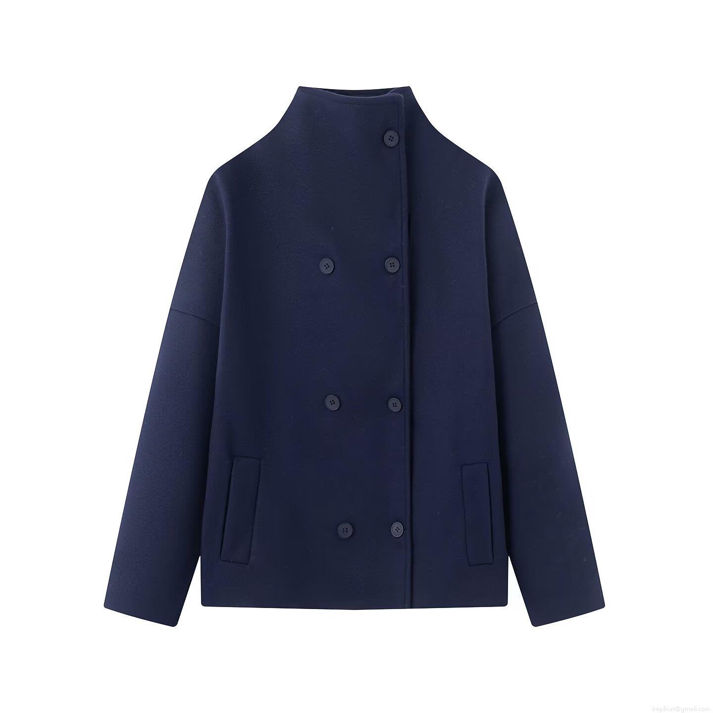 Women's Double Breasted Stand Collar Short Coat Polyester Woolen Jacket Minimalist Solid Color Outerwear For Casual Daily Office Ladies Winter Clothing