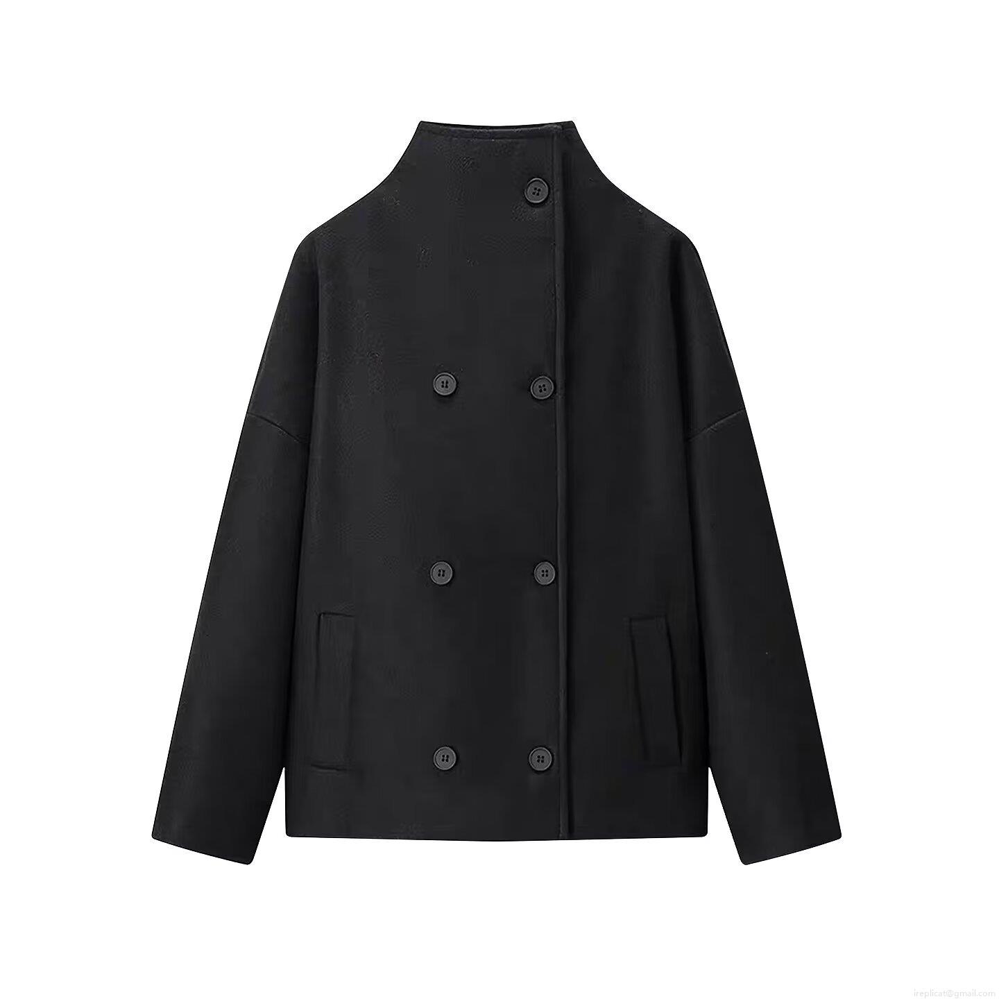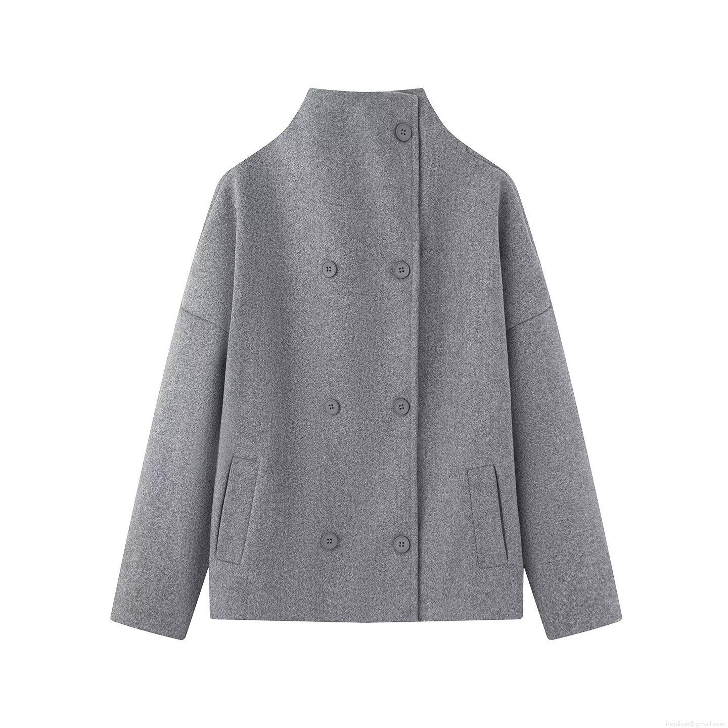 Women's Loose Woolen Jacket Stand Collar Single Breasted Short Coat...