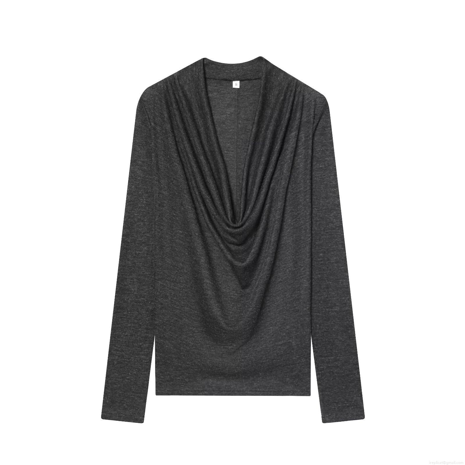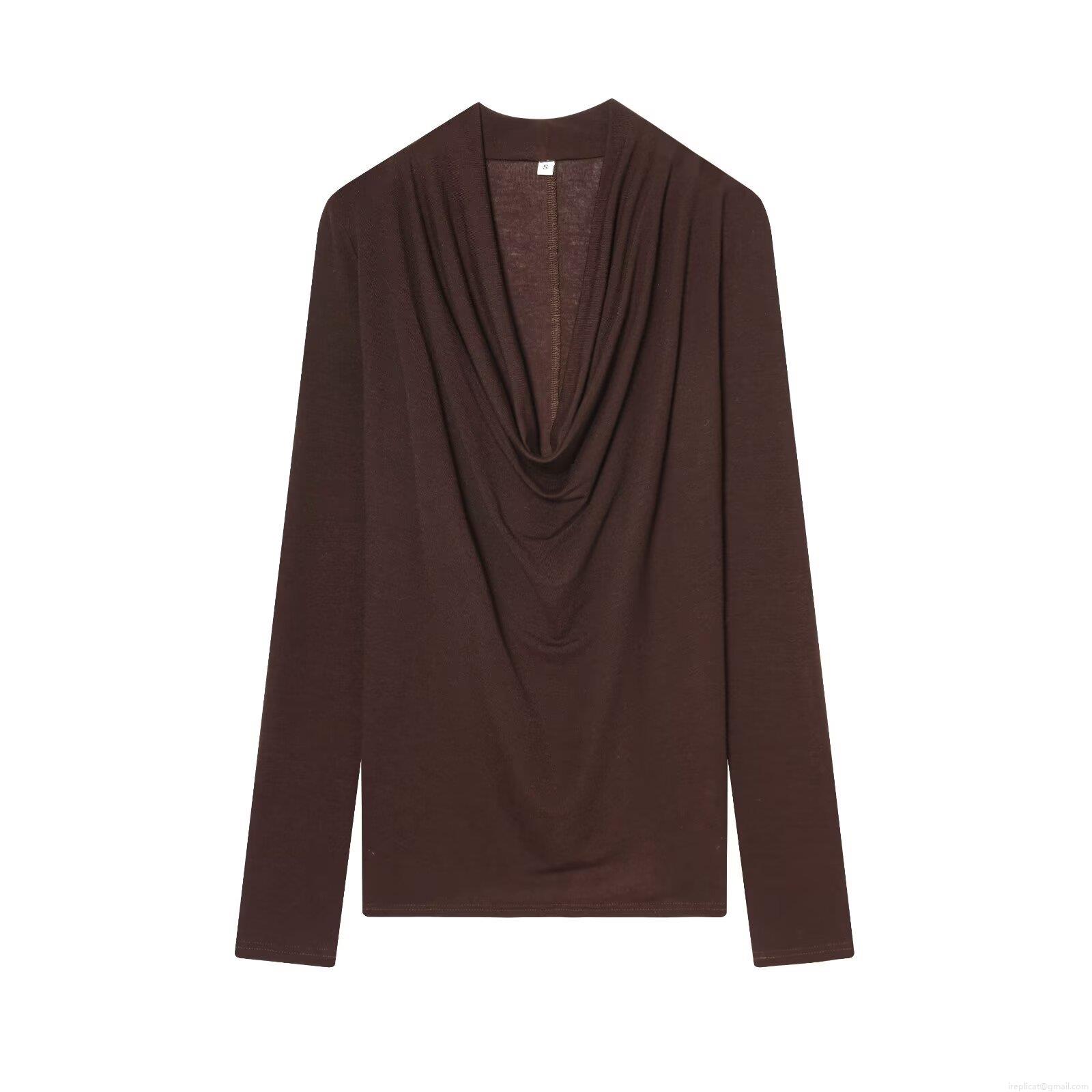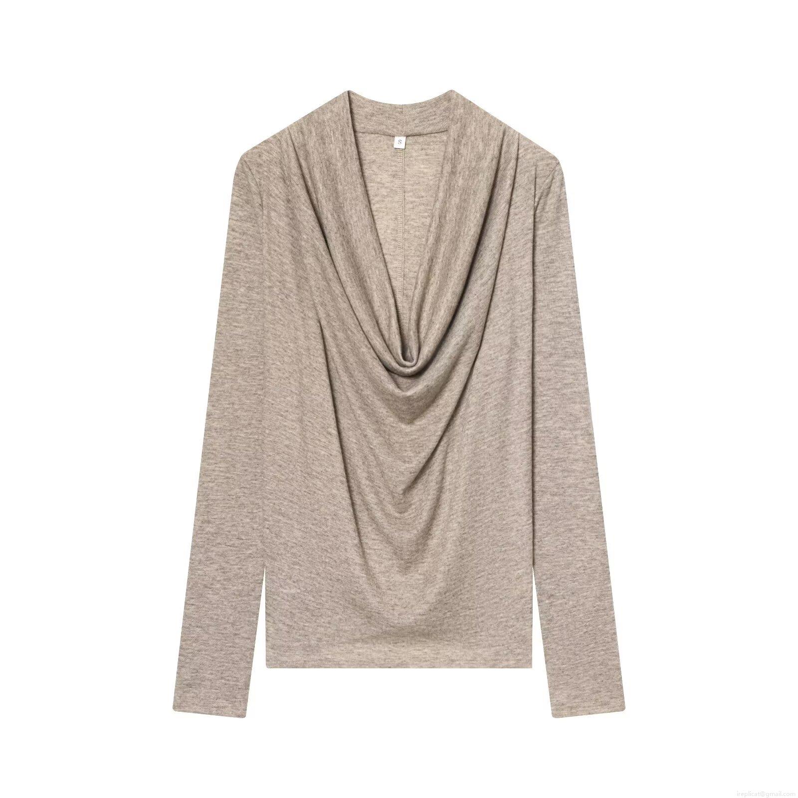 Women's Draped Cowl Neck Long Sleeve T-Shirt Elegant Slim Fit Pullover Knit Solid Color Streetwear Autumn Top Casual Draped Front Tee