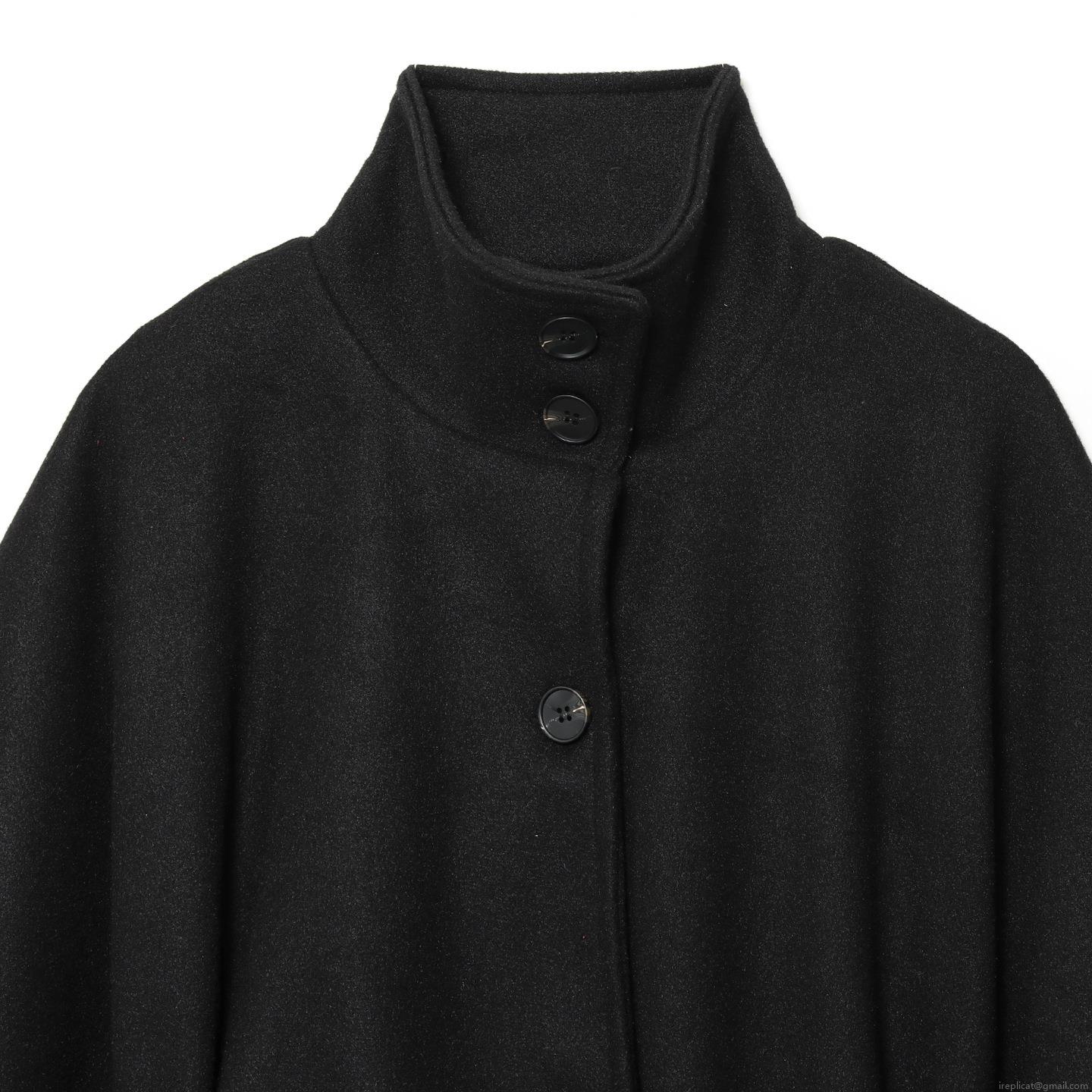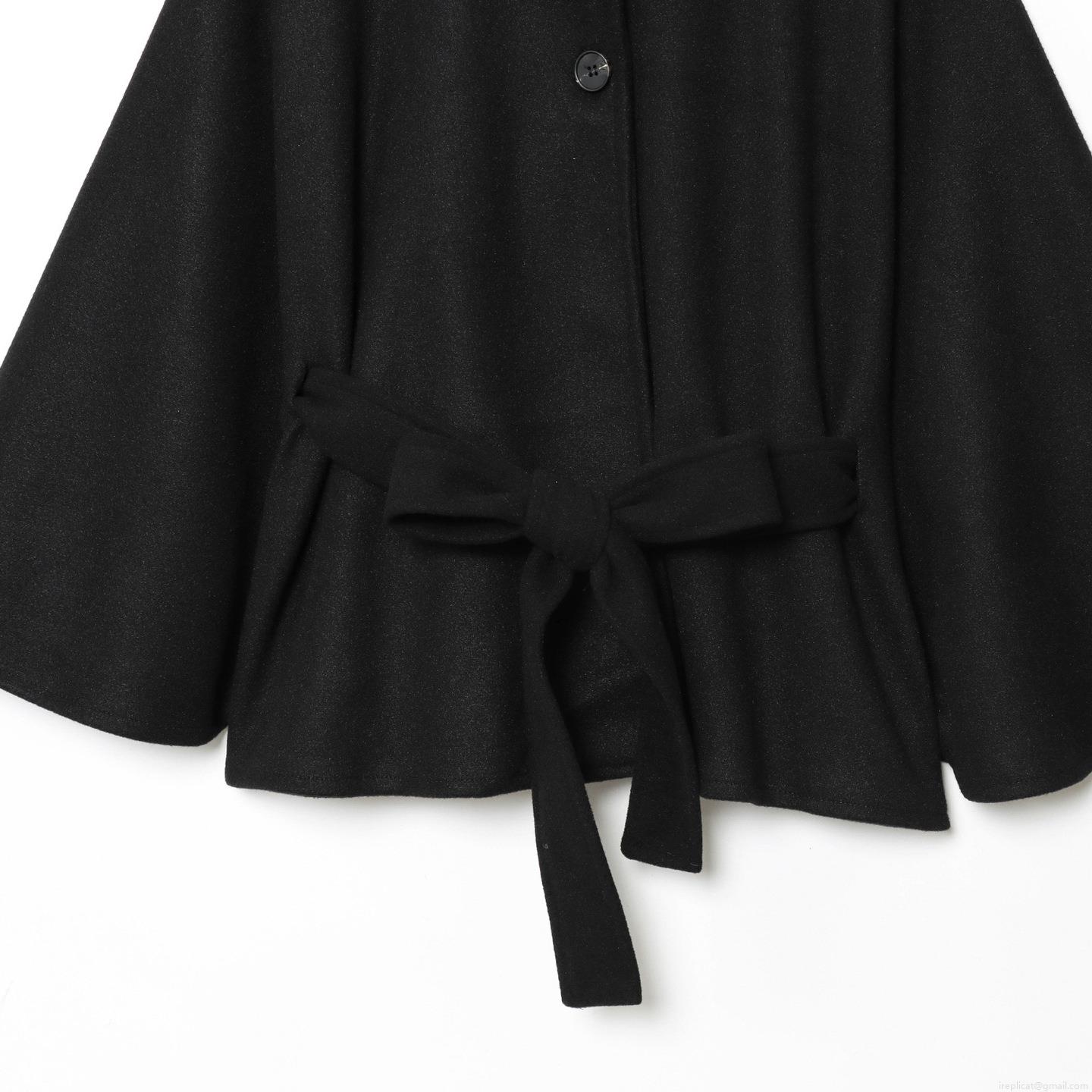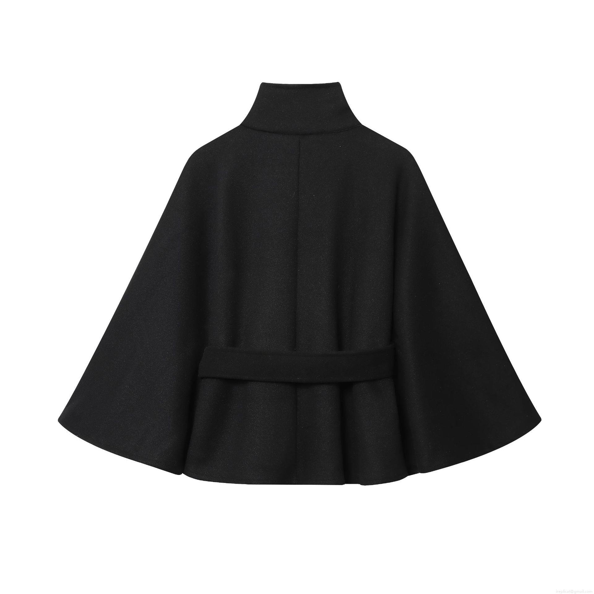 Women's Elegant Black Cape Coat Wool-Like Blend High Neck Cloak Jacket With Waist Belt Autumn Winter Solid Color Slim Outwear For Women