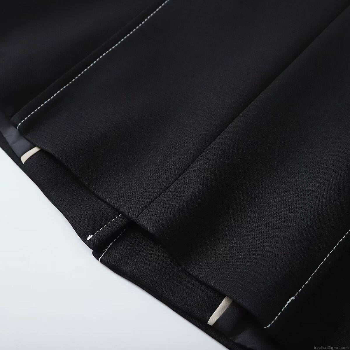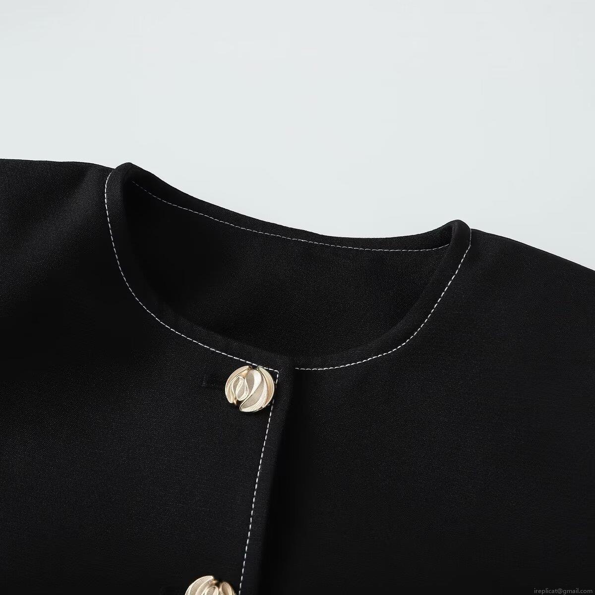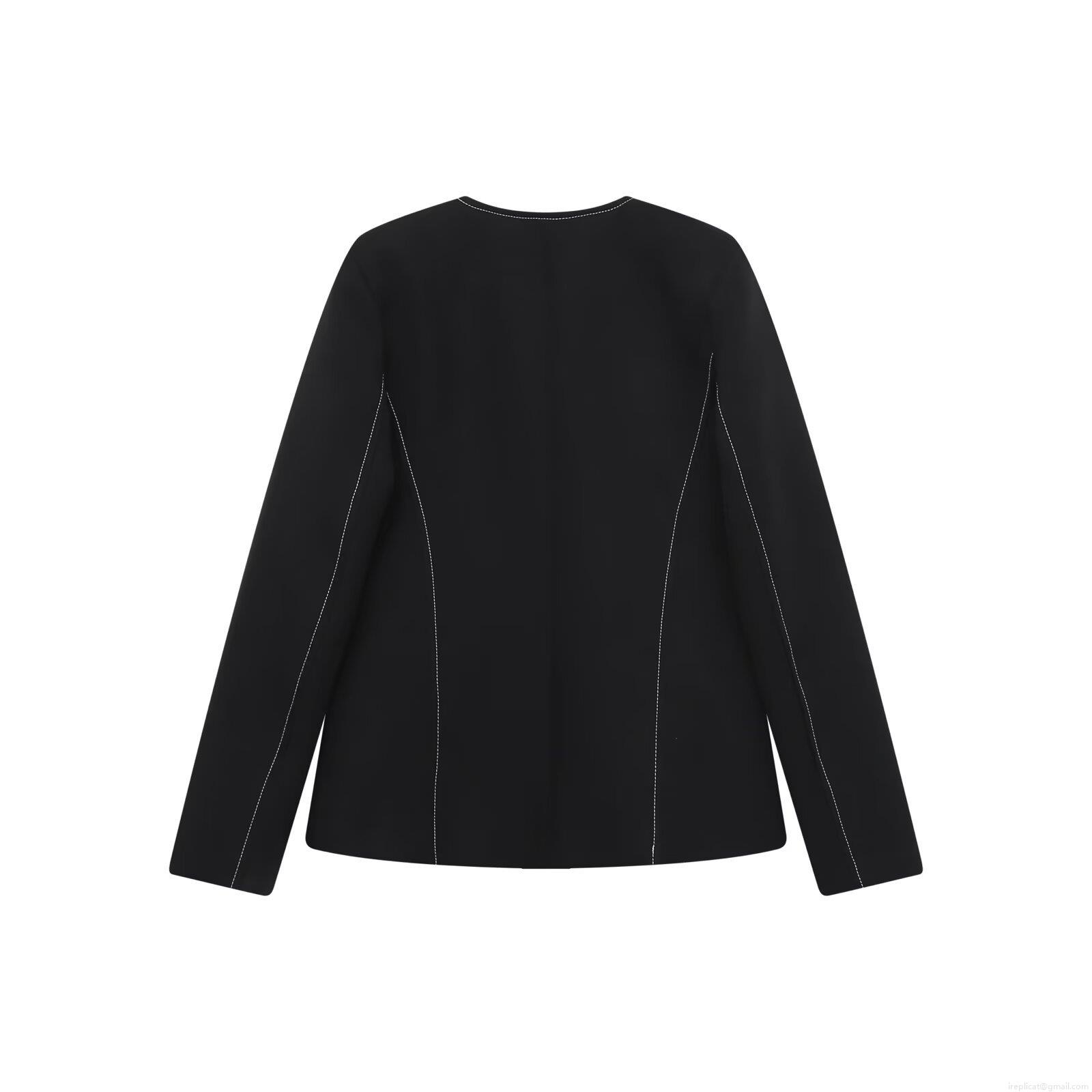 Women's Elegant Black Round Neck Jacket Slim Fit Outerwear With White Contrast Stitching And Gold Metal Buttons For Office Daily Autumn Lady Blazer Coat