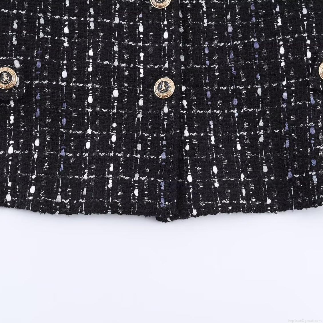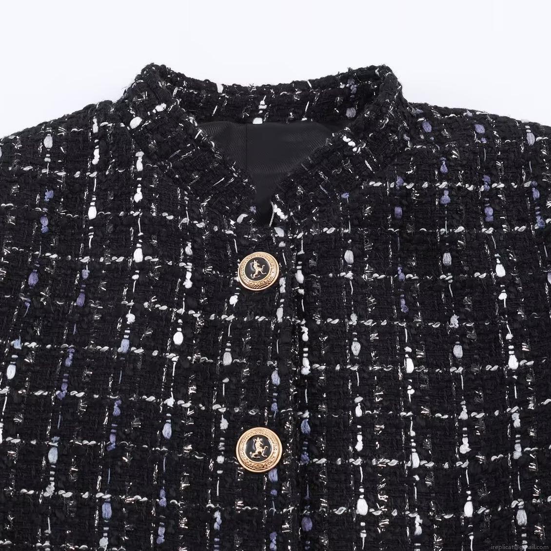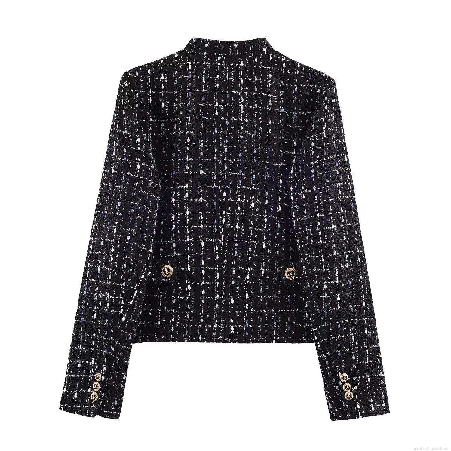Women's Elegant Tweed Jacket Contrast Trim Short Outerwear With Gold...