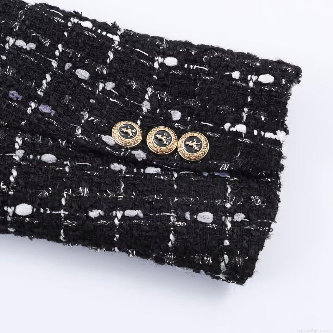 Women's Elegant Black Tweed Jacket Vintage Lion Metal Button Long Sleeve Short Outerwear For Office Party Fall Winter Polyester Jacket