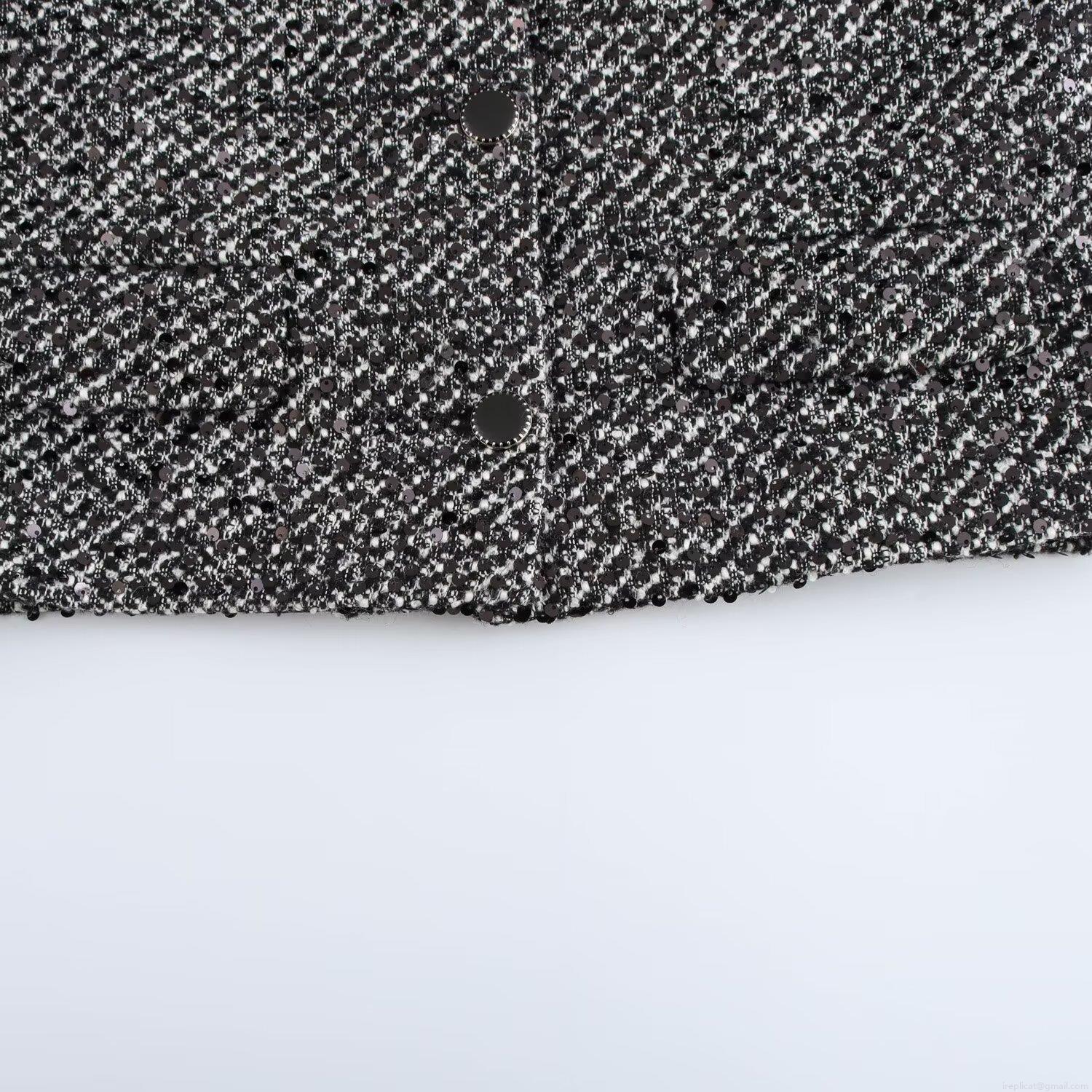 Women's Elegant Black White Tweed Sequin Jacket Vintage Short Coat Long Sleeve Single Breasted Button Outwear For Office Party Fall Spring Women Clothing