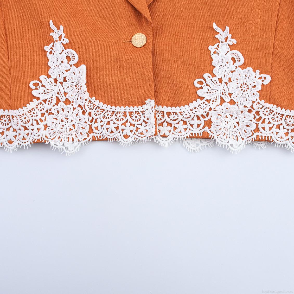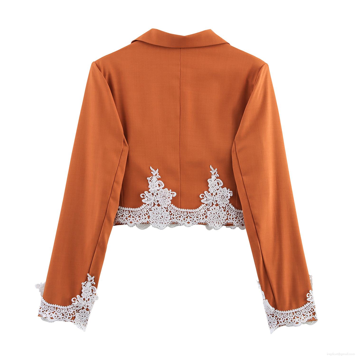Women's Elegant British Style Short Blazer Jacket With White Lace Stitching Notched Lapel Long Sleeve Single Gold Button Solid Color Office Commute Coat