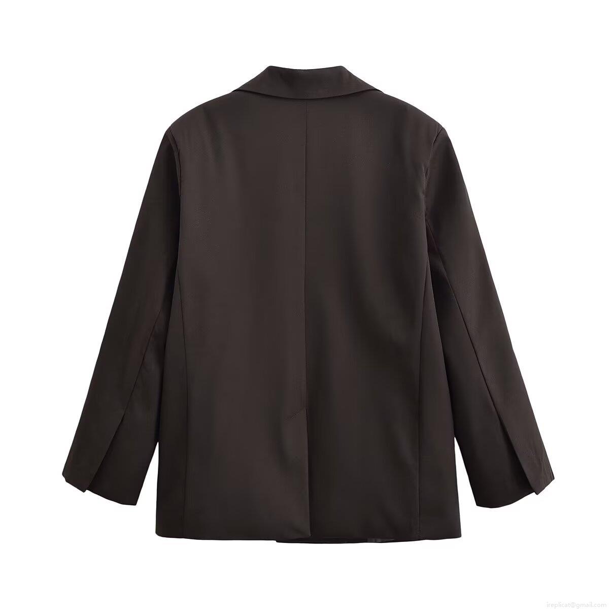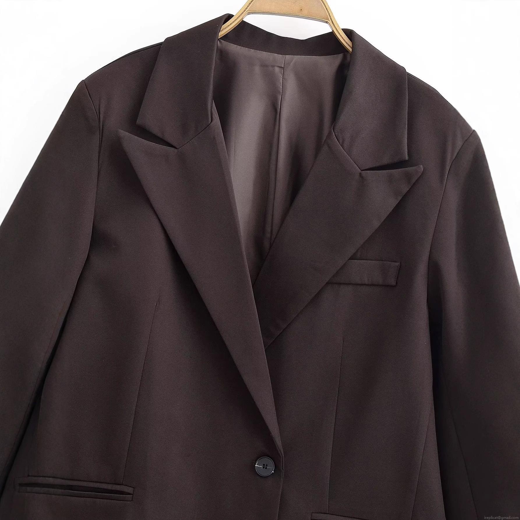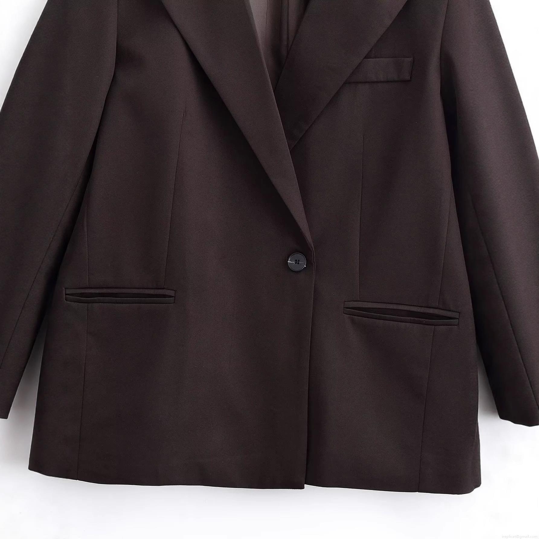 Women's Elegant Dark Brown Twill Blazer Notched Lapel Single Breasted One Button Office Casual Suit Jacket With Pockets Fully Lined Outerwear