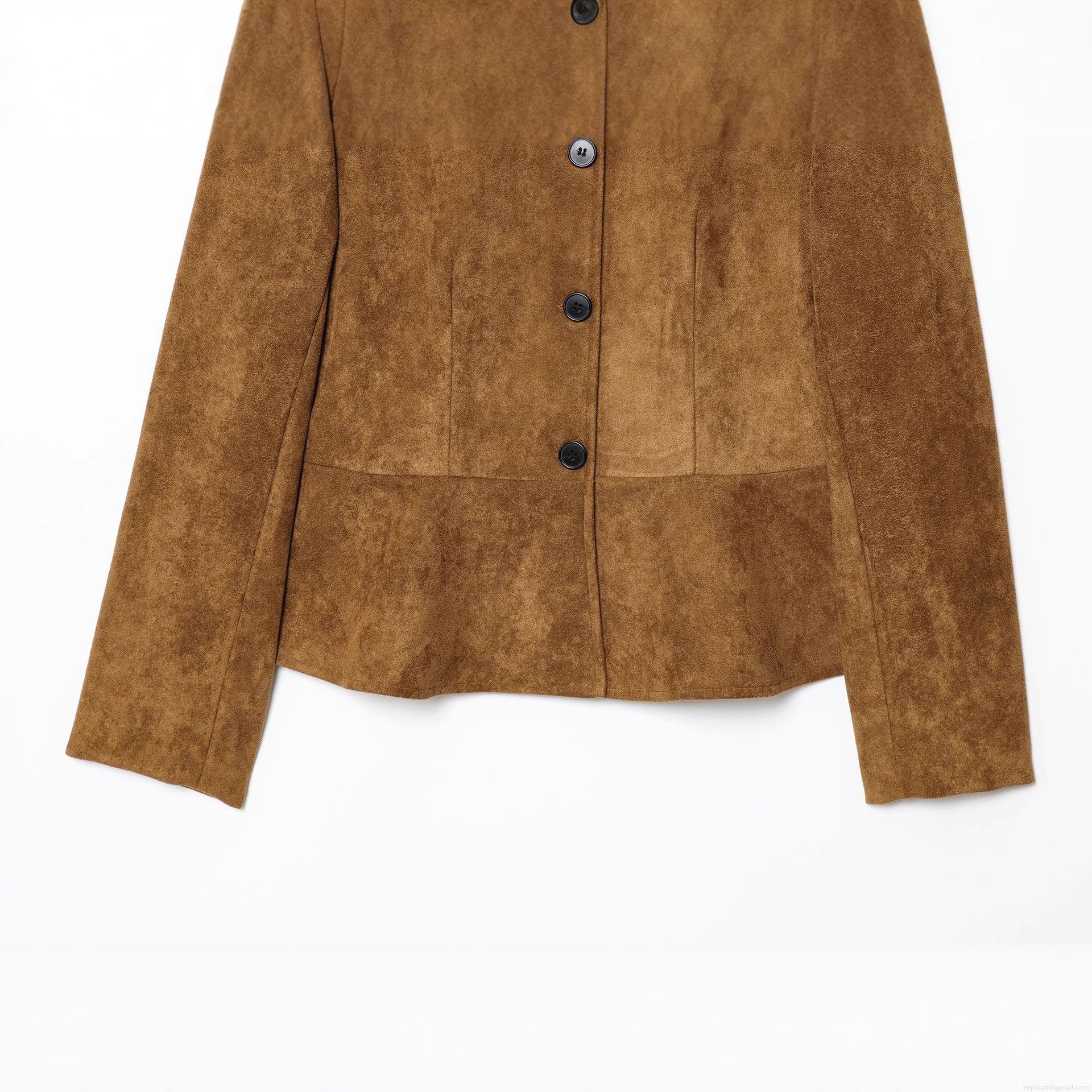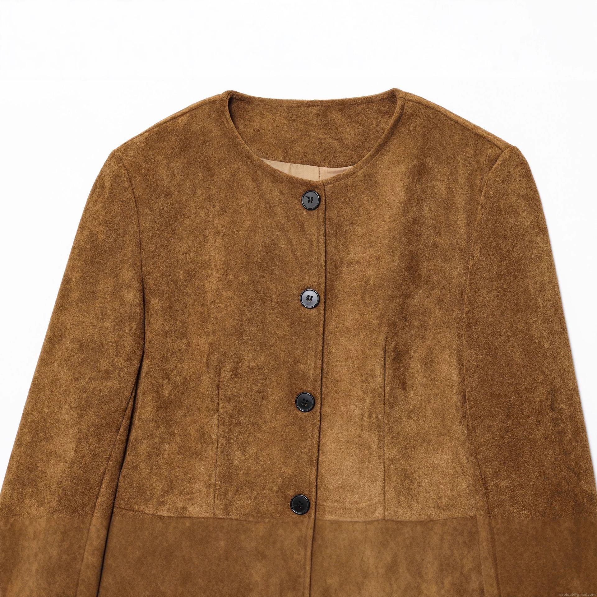 Women's Elegant Faux Suede Jacket Round Neck Single Breasted Button Down Long Sleeve Short Coat Retro Casual Polyester Outerwear For Lady