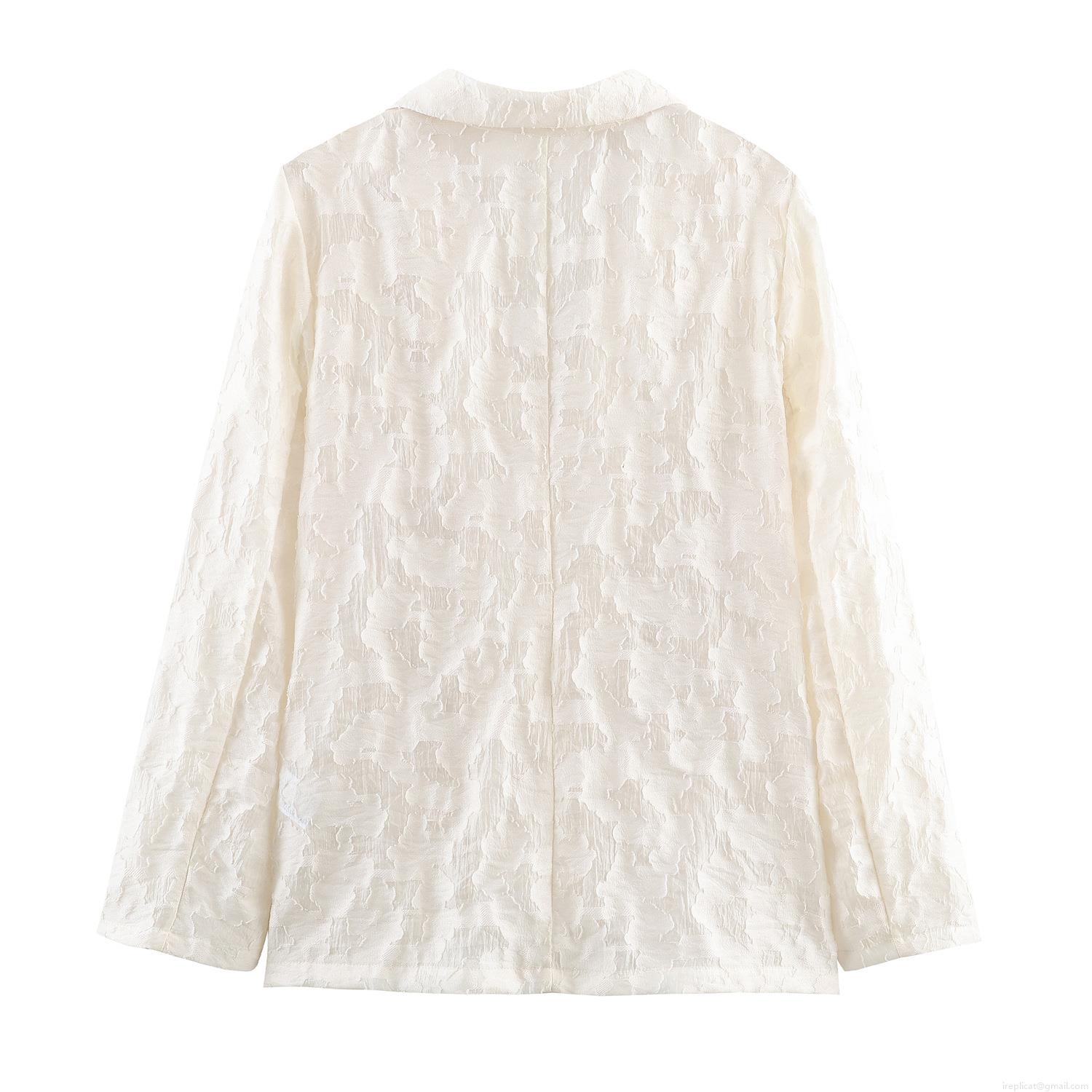 Women's Elegant Floral Jacquard Lace Blazer Slim Fit Long Sleeve Jacket With Pearl Buttons For Office Party Daily Casual Ladies Outerwear