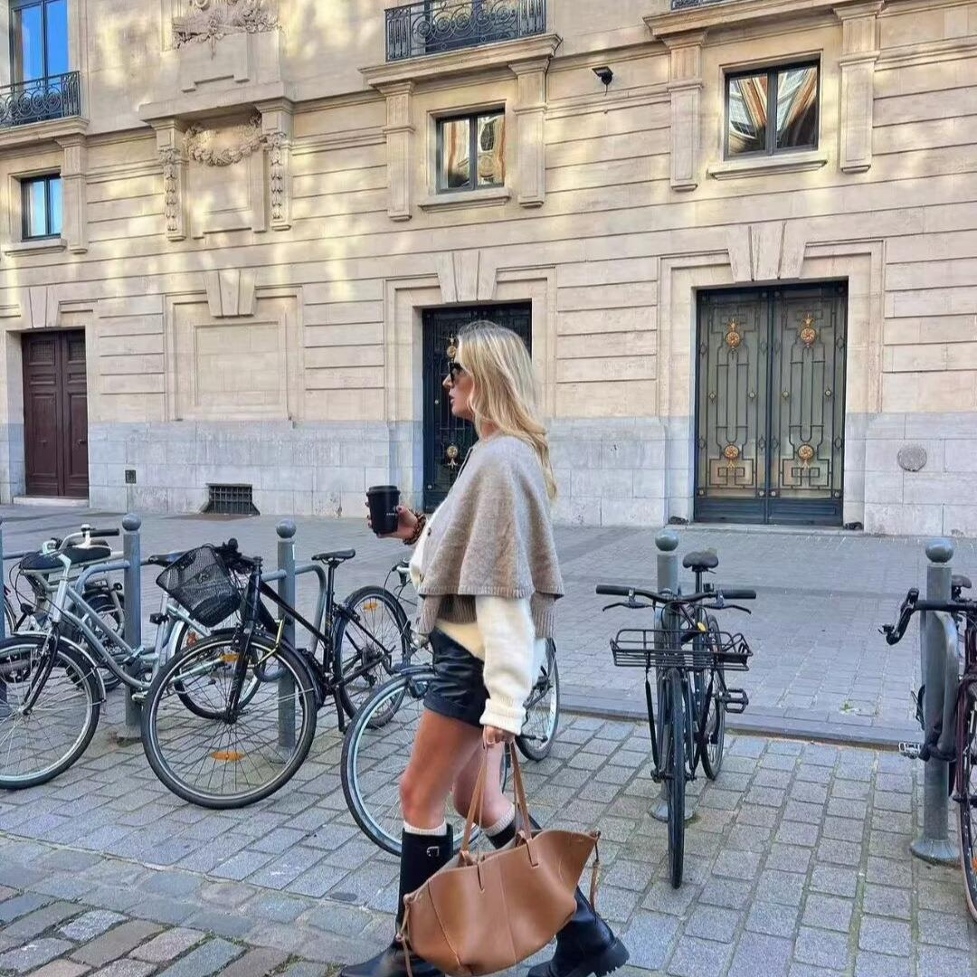 Women's Elegant French Style Round Neck Knit Cloak Cardigan Loose Batwing Sleeve Solid Color Cape Sweater For Autumn Winter Daily Wear