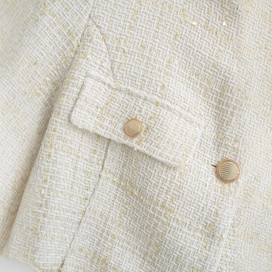 Polyester, Tweed, Metal Buckle, Gold Thread Blend