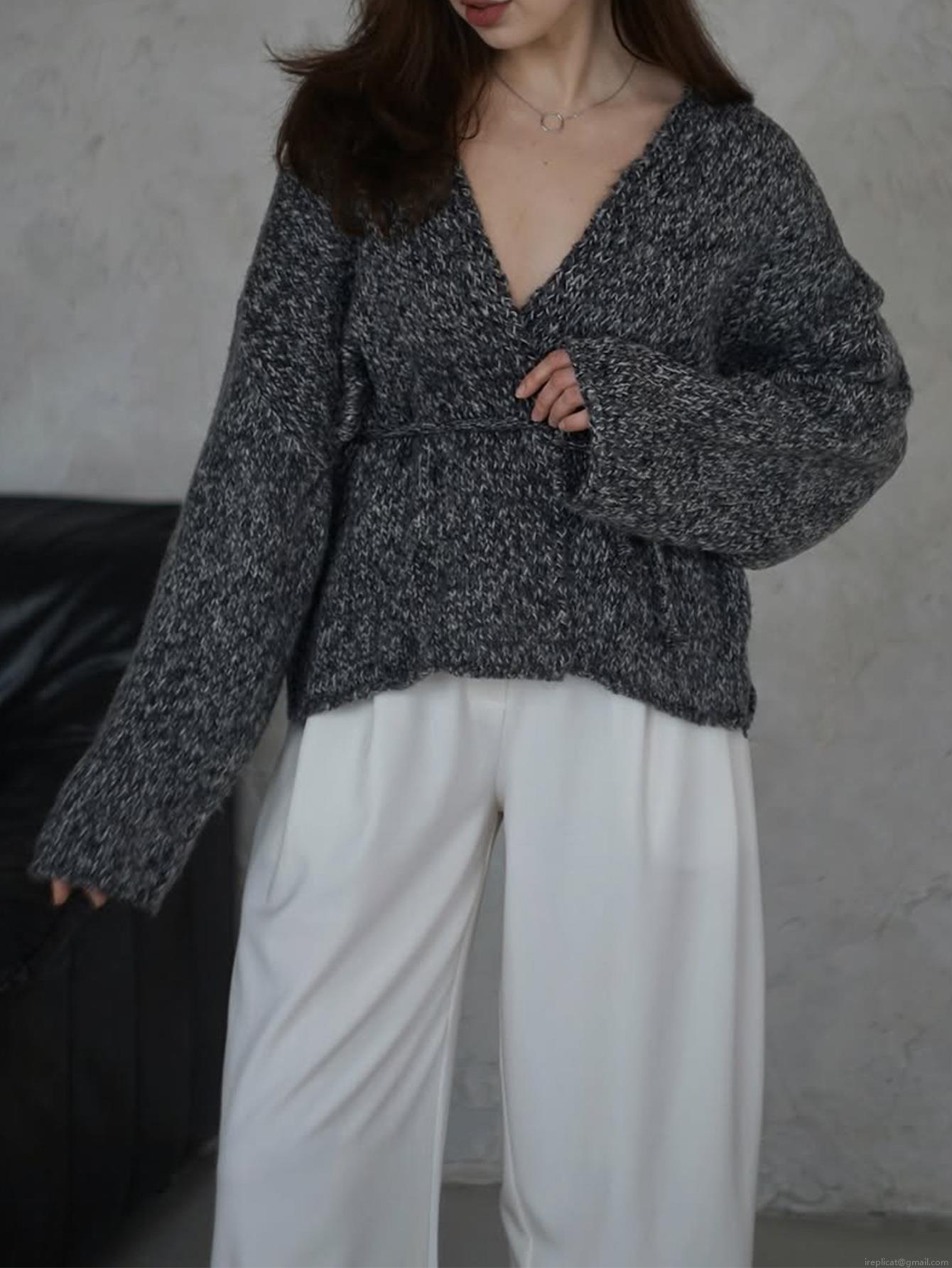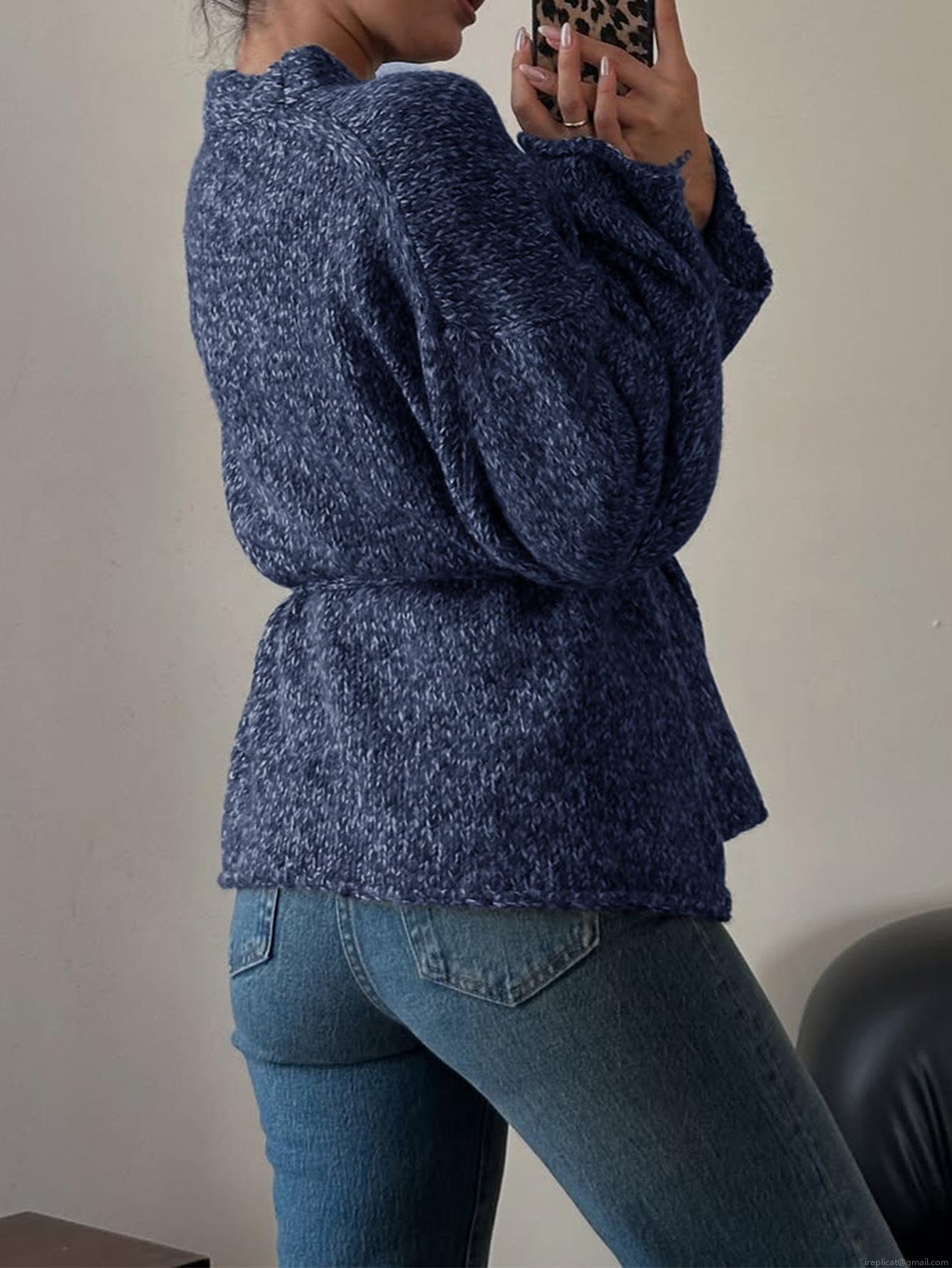 Solid Color, Mixed Colors, Lace, V-neck, Chunky Knit Texture, Wrap Style