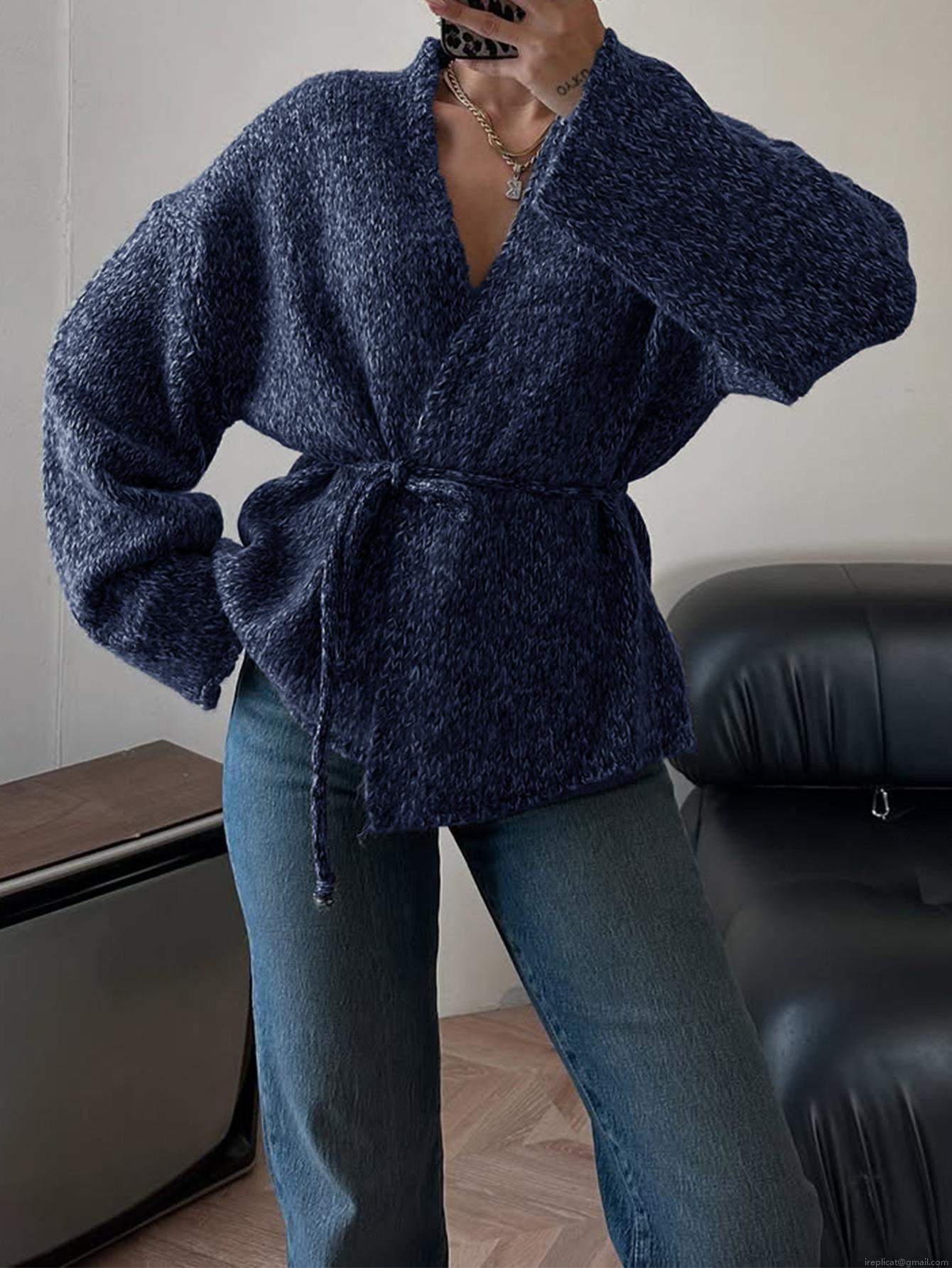 Women's Elegant Knit Wrap Cardigan V-Neck Belted Waist Long Sleeve Sweater Coat Solid Color Fashion Knitwear Outwear for Office Daily Wearing