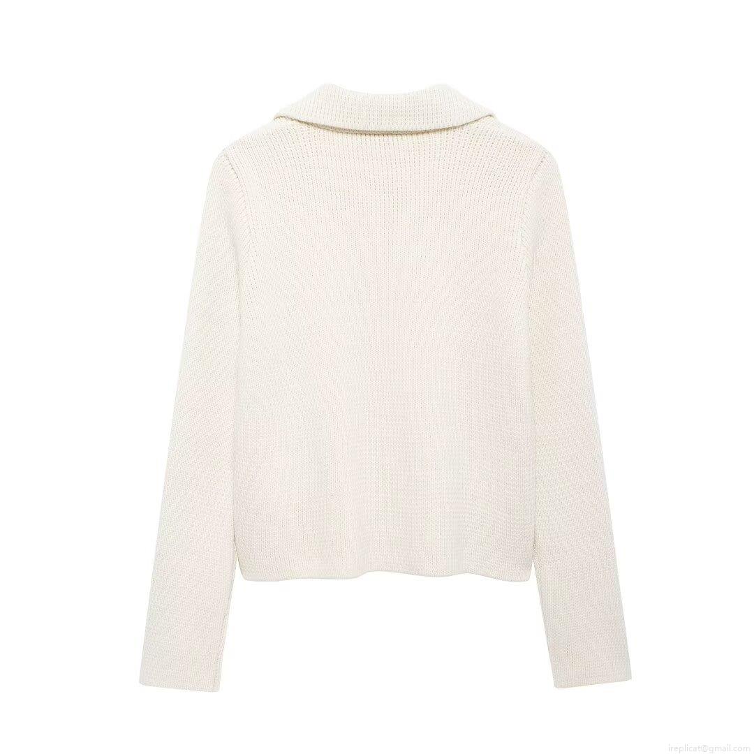 American Retro Style Women White Knit Sweater Cotton Blend Round Neck...