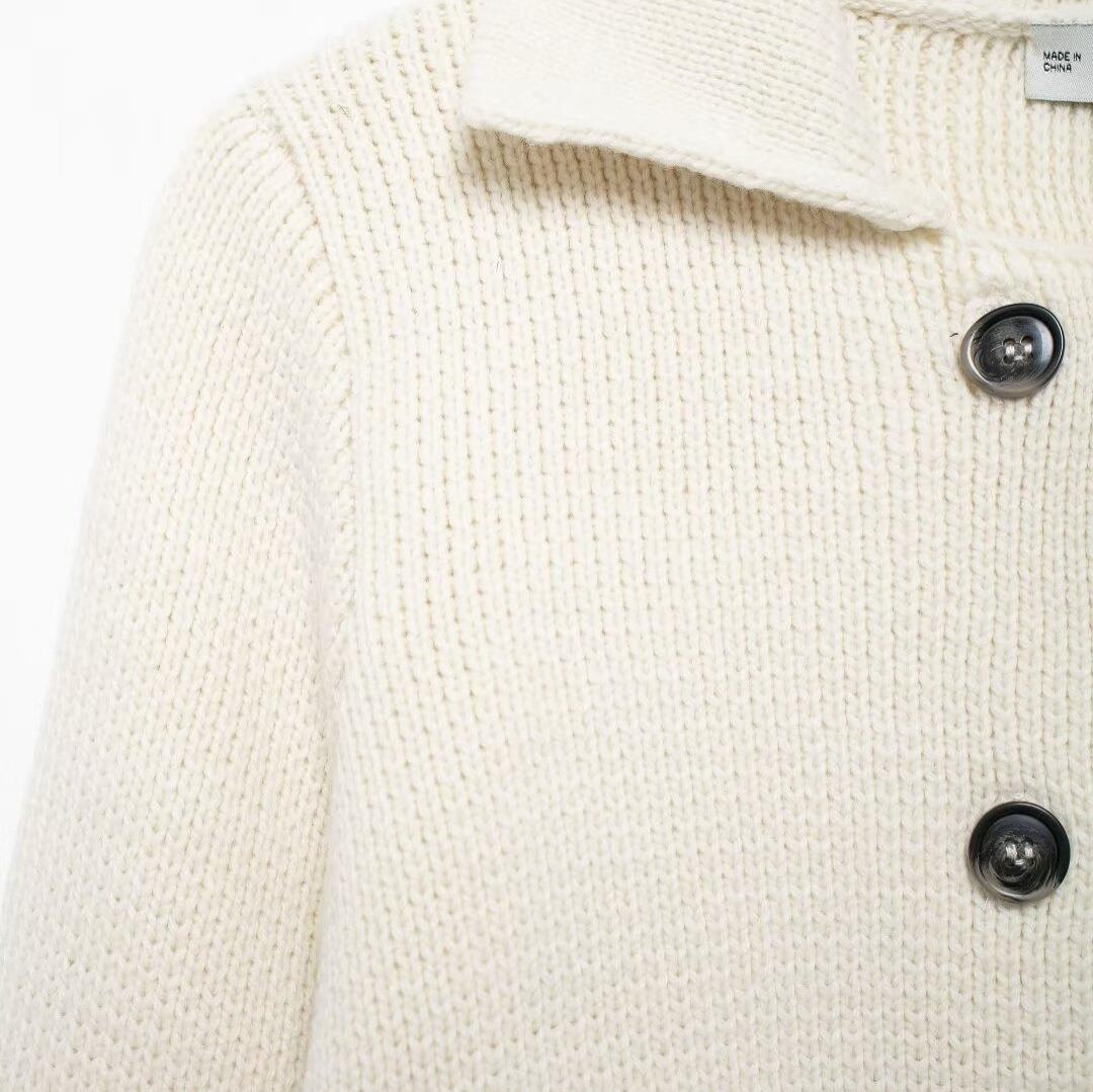 Women's Elegant Knitted Cardigan Double Breasted Lapel Collar Long Sleeve Solid Color Warm Sweater Jacket Coat For Women