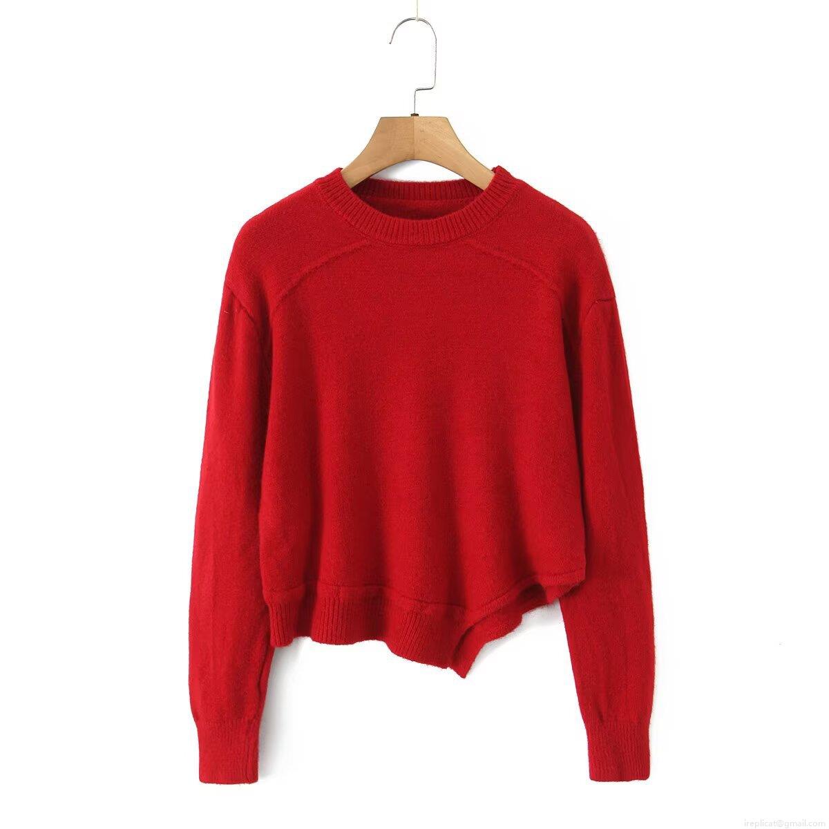 Solid Color, Irregular Hem, Asymmetrical Design, Knitted Texture