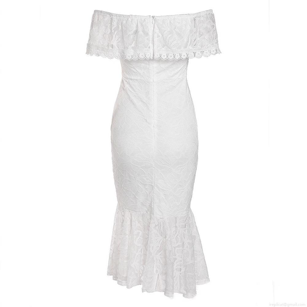 Women's Elegant Lace Polyester Off-shoulder Fishtail Dress Sexy Bodycon Evening Party Gown White Light Blue Black Midi Dress For Women