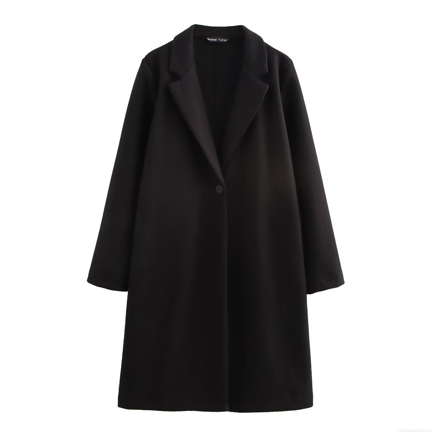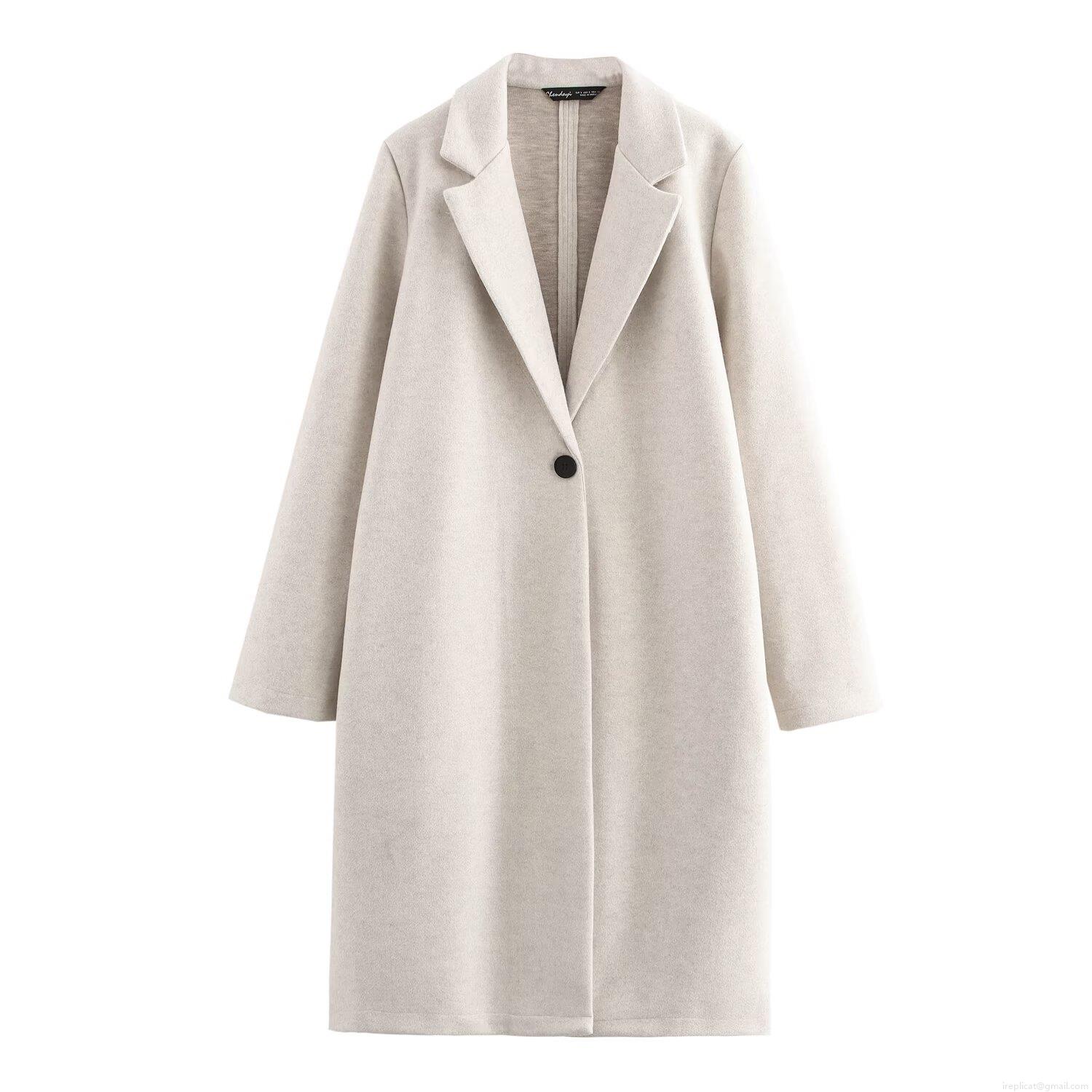 Women's Elegant Mid-length Woolen Style Coat Polyester Lapel Single Button Outerwear For Autumn Winter Casual Fashion Solid Color Ladies Trench Coat