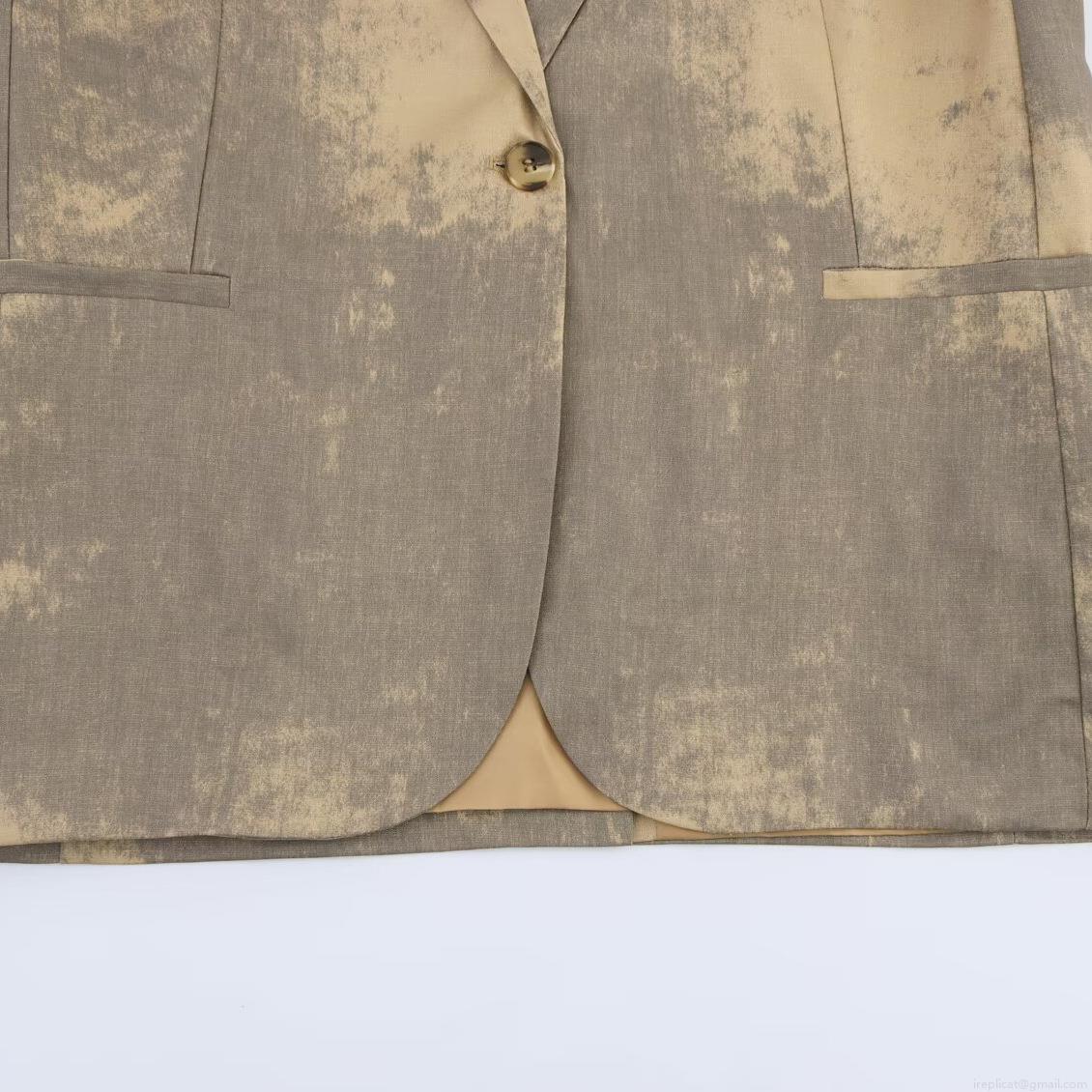 Women's Elegant Minimalism Tie-Dye Printed Blazer Loose Fit Long Sleeve Polyester Spandex Casual Commuting Suit Jacket Outerwear