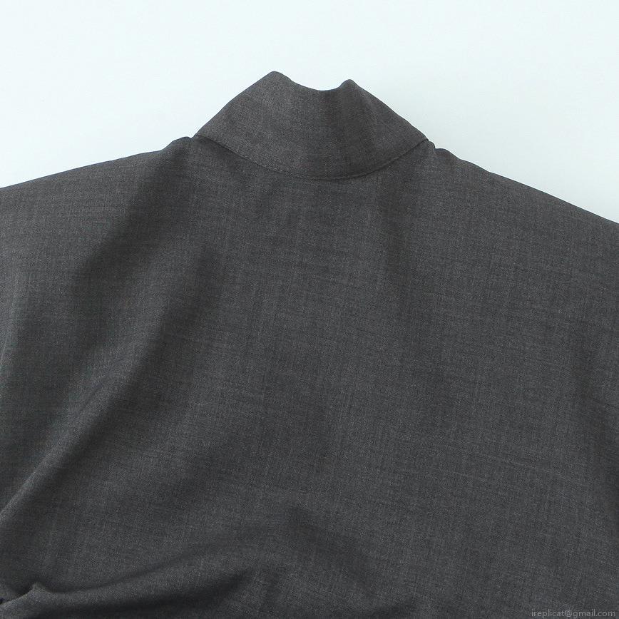 Solid Color, Pleated Decoration, Mock Neck, Shoulder Pad Design