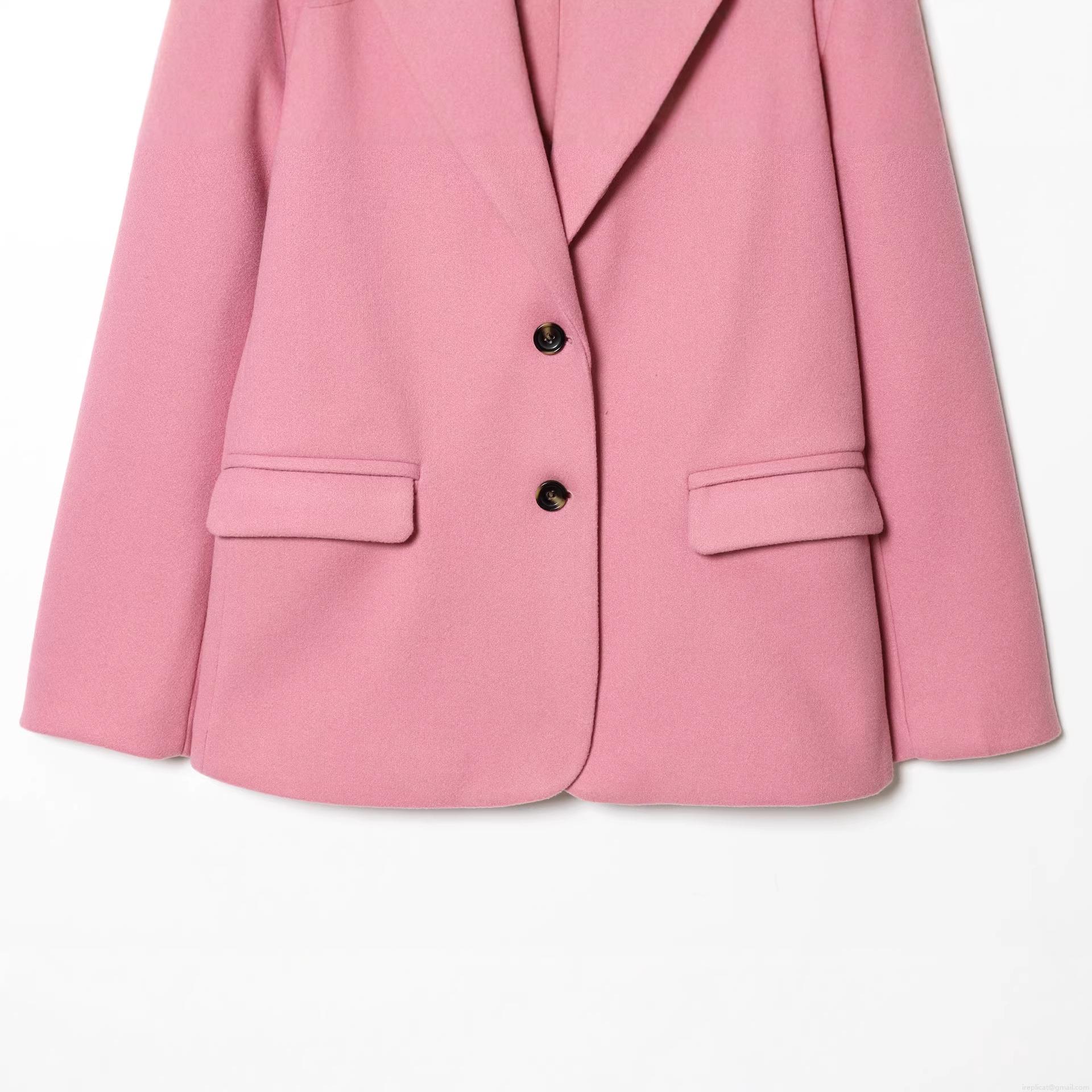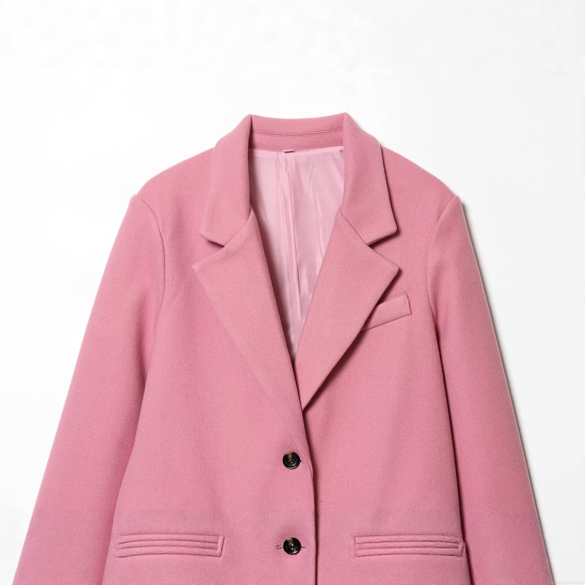 Women's Elegant Pink Mid-length Blazer Coat Single Breasted Polyester Woolen Look Suit Jacket For Casual Office Lady Solid Color Outerwear
