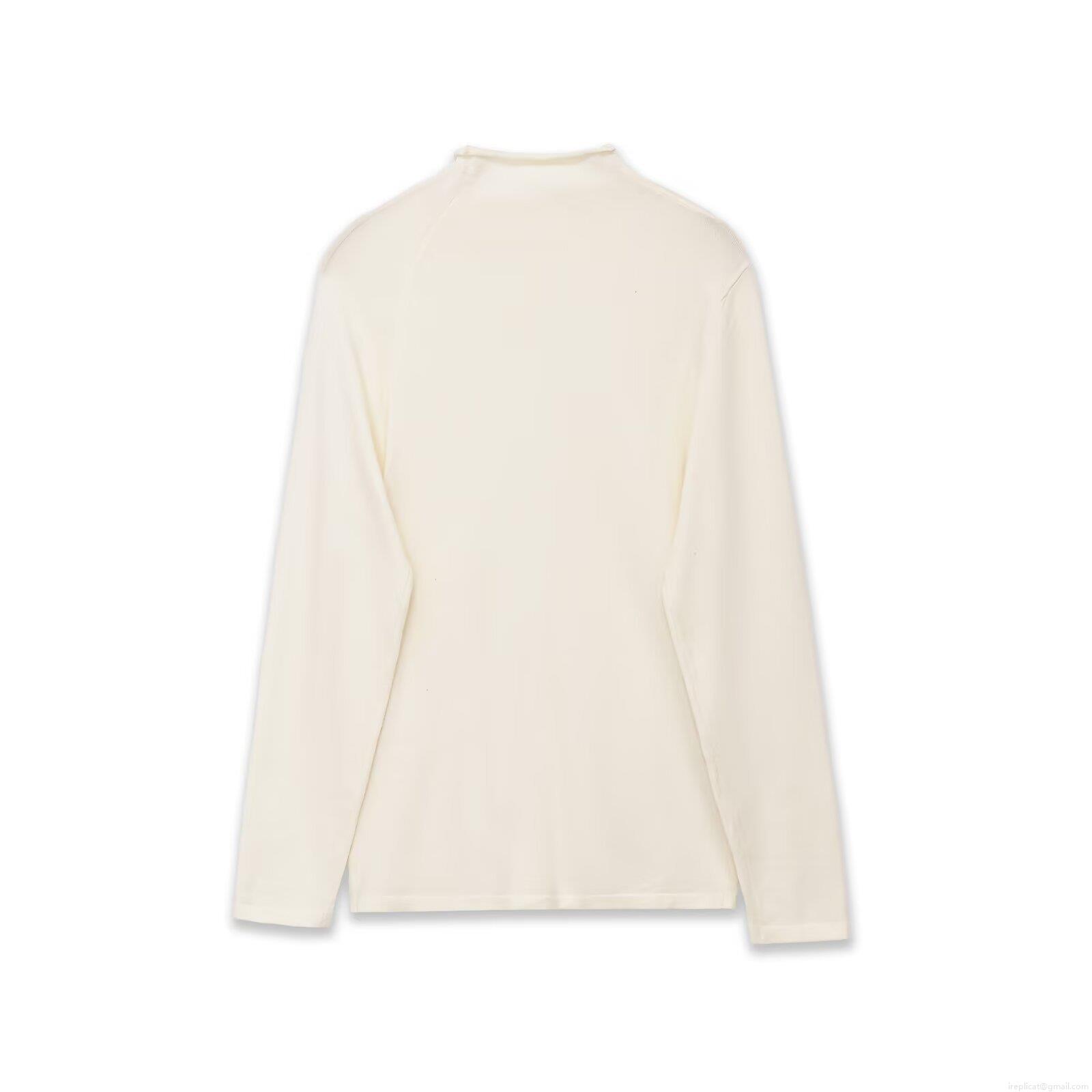Women's Elegant Pleated Shoulder Mock Neck Long Sleeve T-Shirt Solid Color Slim Fit Knitted Top For Autumn Winter Casual Soft Polyester Pullover Blouse