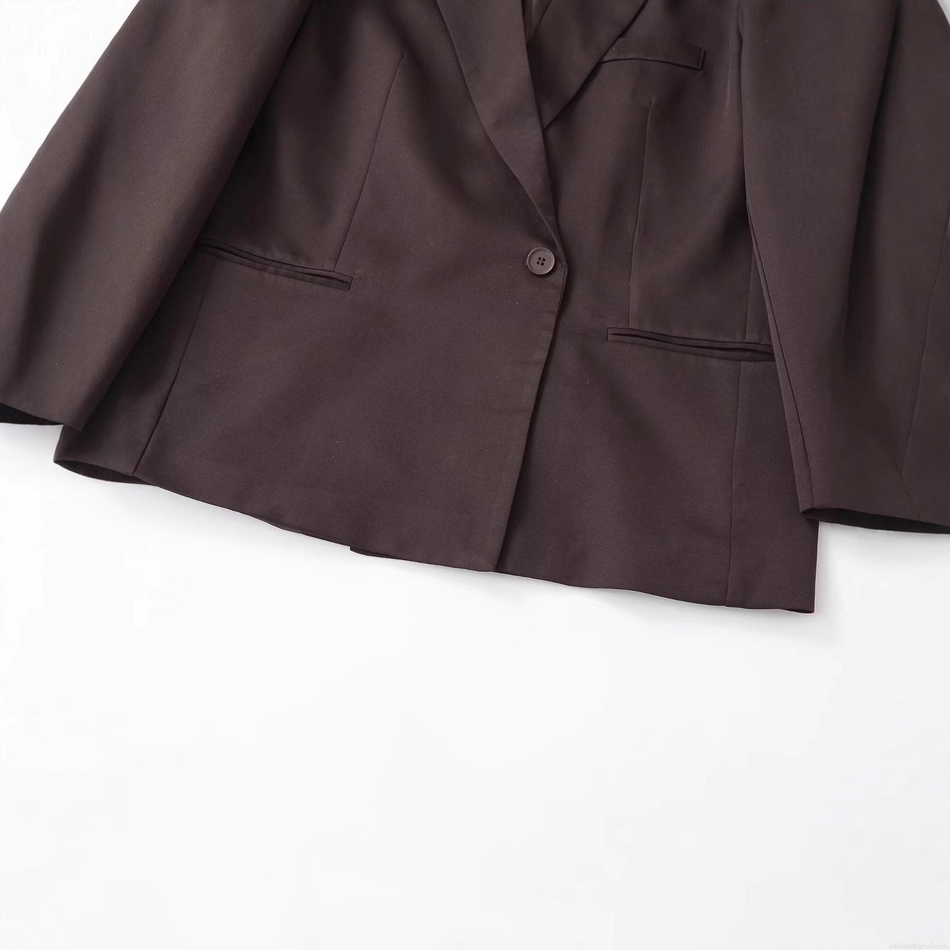 Women's Elegant Polyester Blazer Single Breasted Lapel Jacket For Office Daily Wear Chocolate Brown Solid Color Long Sleeve Outerwear