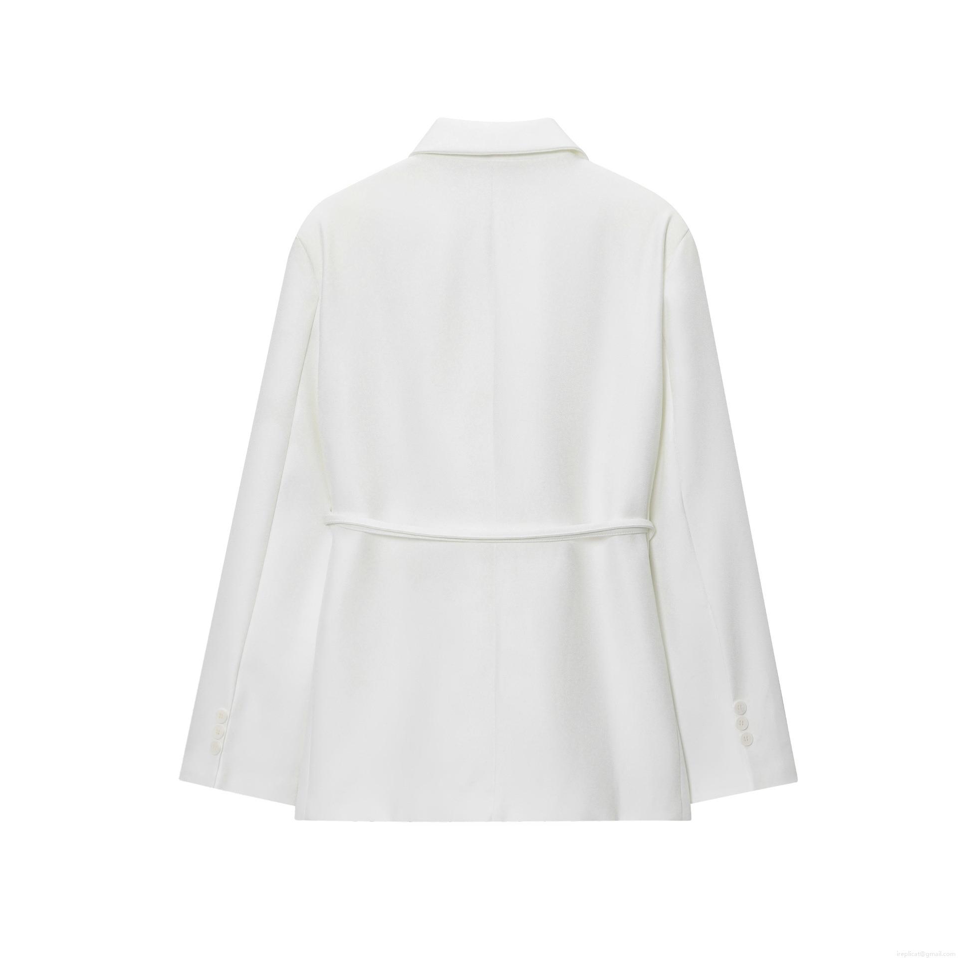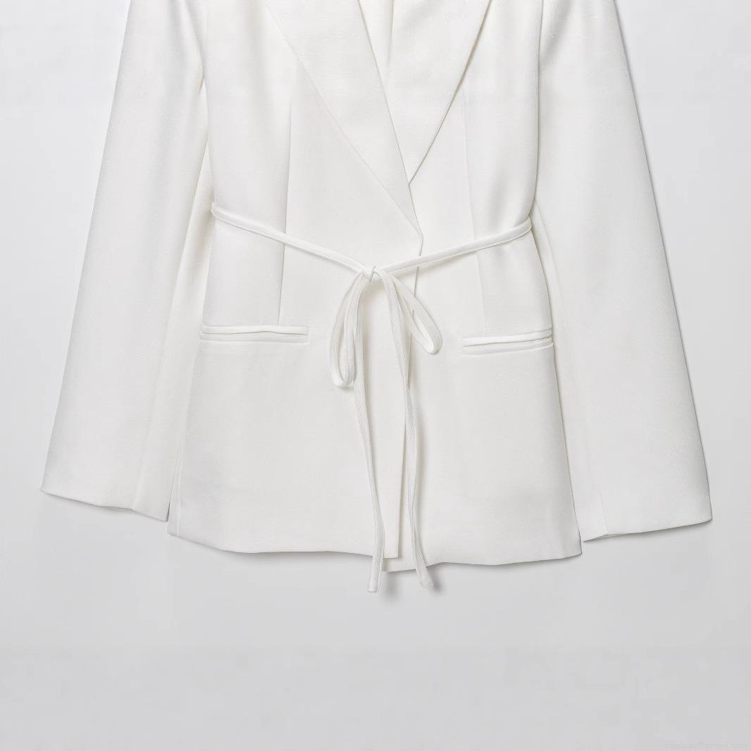 Women's Elegant Polyester Blend Blazer Jacket With Waist Tie Belt Notched Lapel Long Sleeve Casual Commuter Suit Coat For Office Lady Work Party