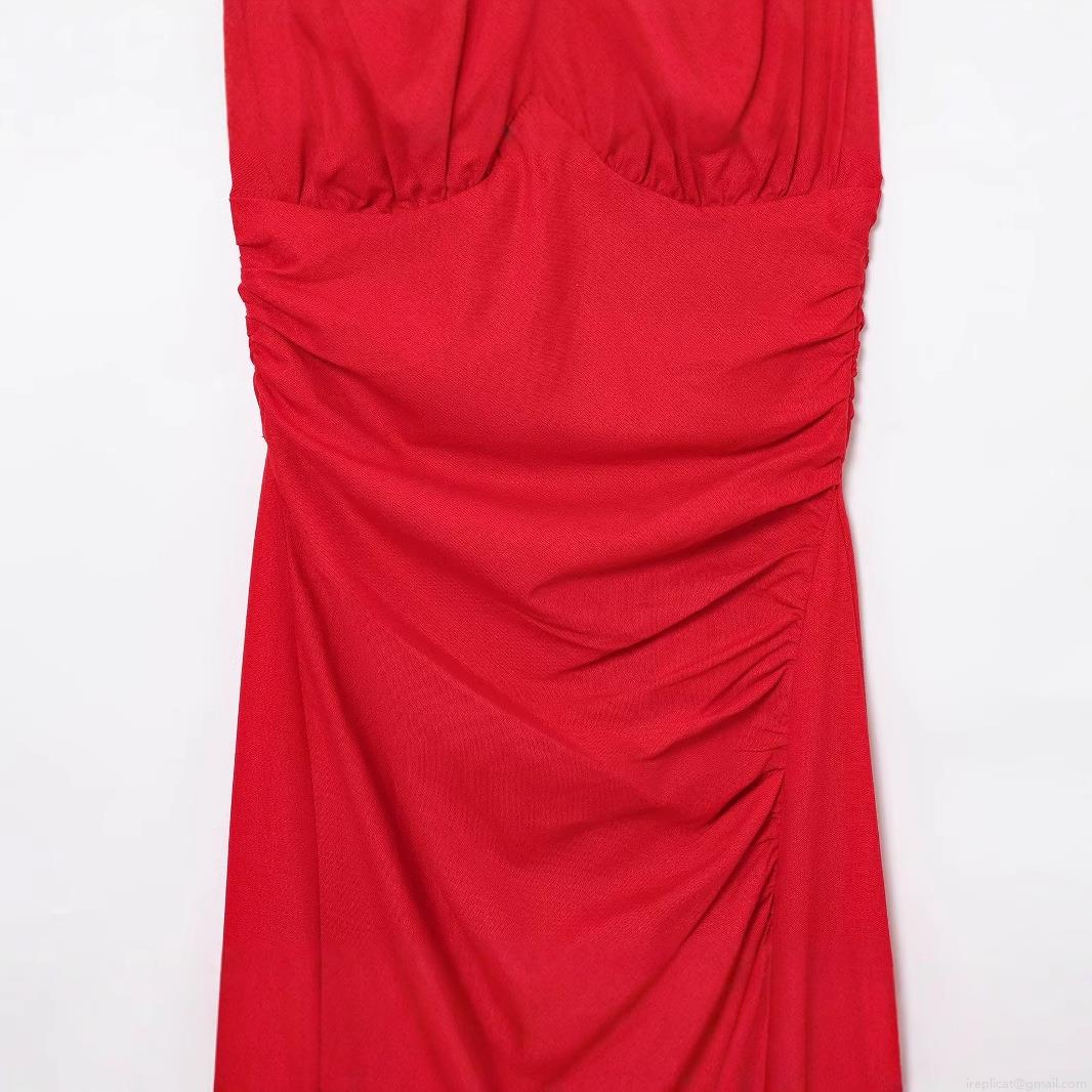 Women's Elegant Red Halter V-Neck Maxi Dress Ruched Slim Fit Side Slit Backless Party Evening Wedding Guest Dress Sleeveless Bodycon Long Dress