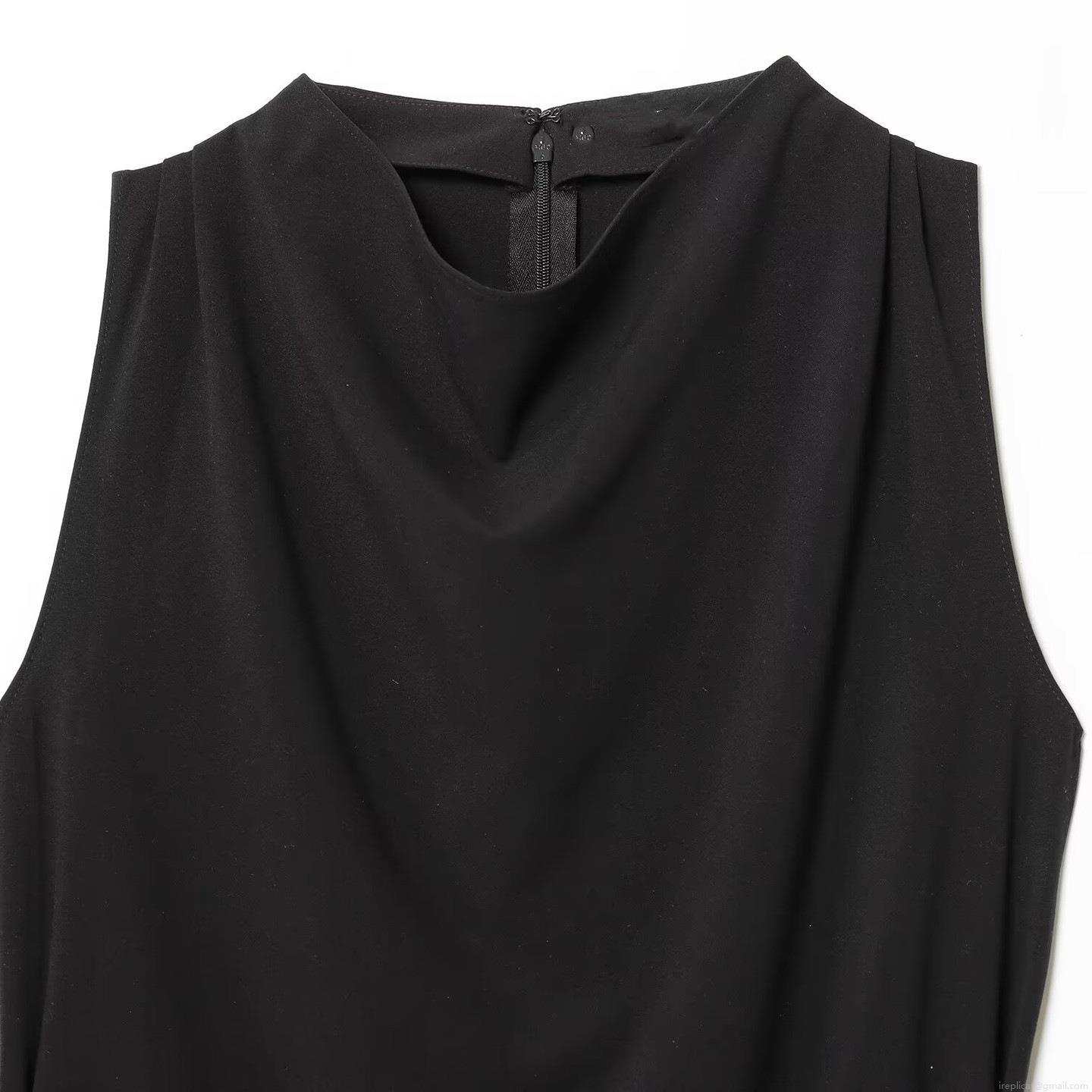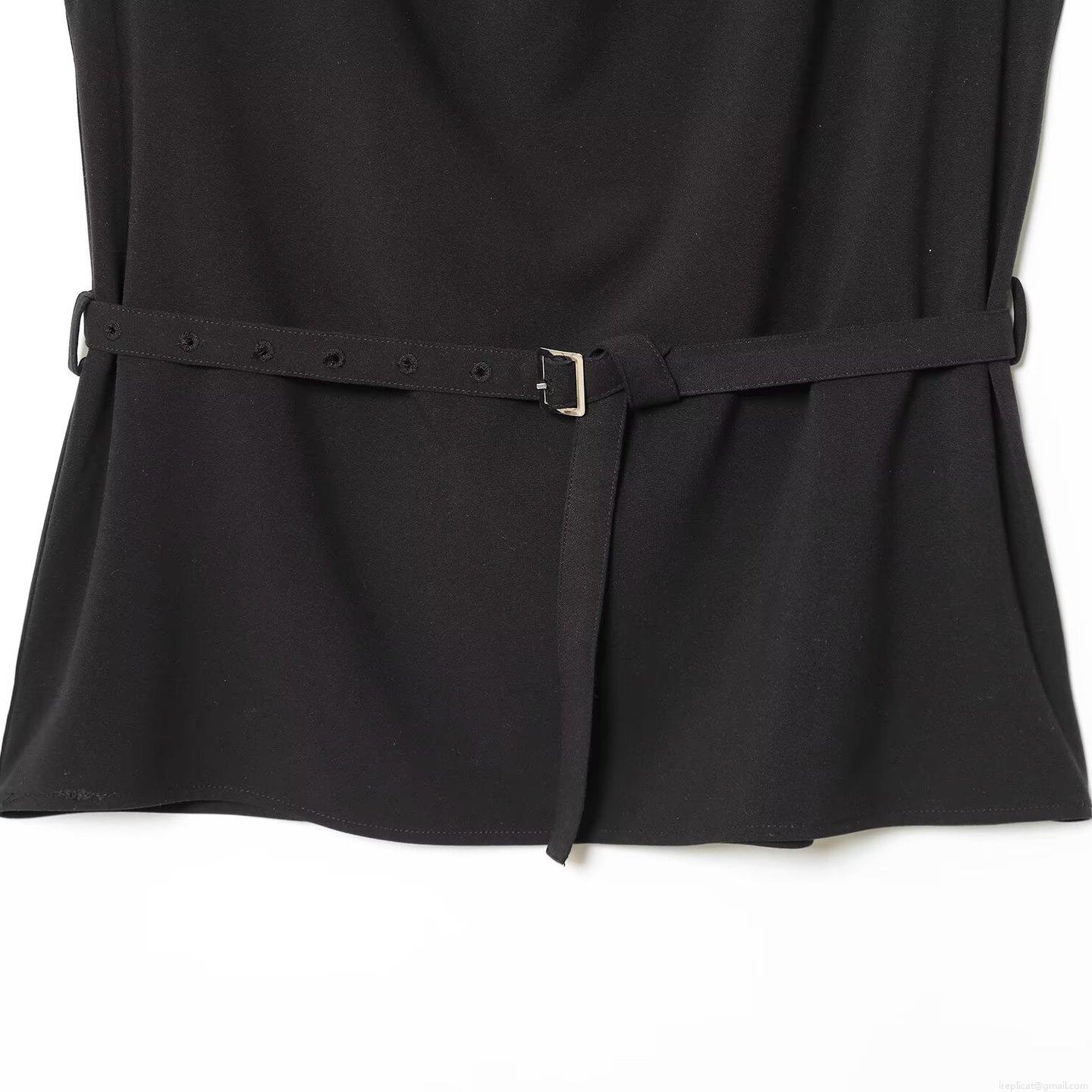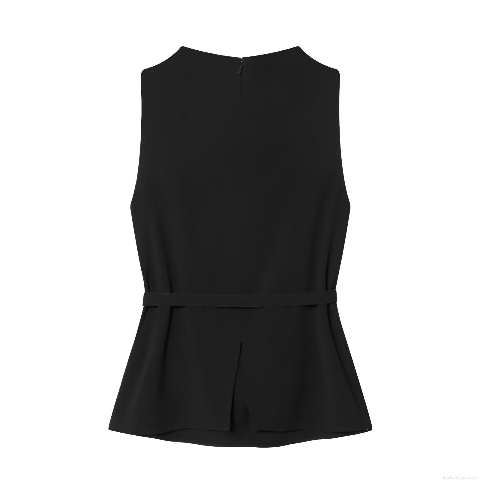 Women's Elegant Sleeveless Top With Metal Buckle Belt Draped Neck Polyester Spandex Fashion Commute Vest Black Slim Fit Solid Blouse