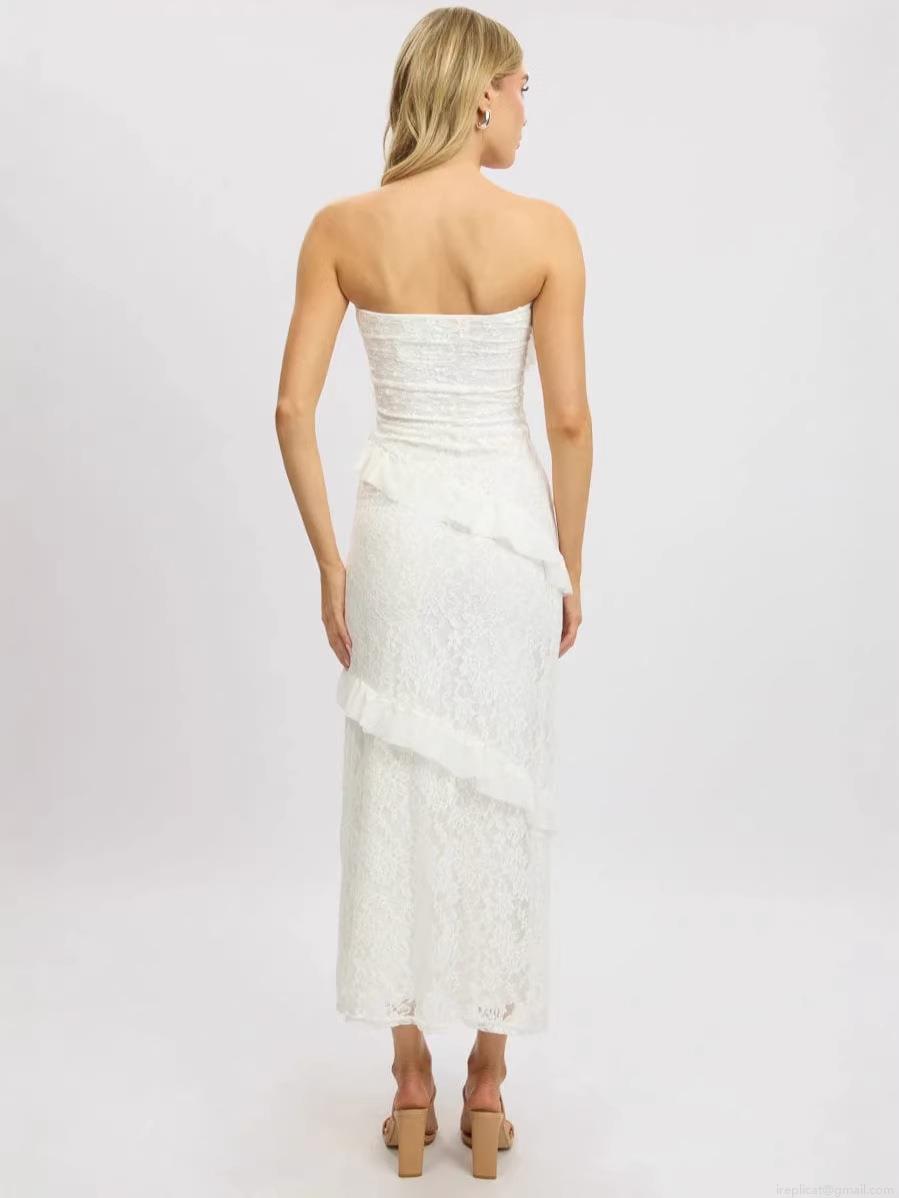 Women's Elegant Strapless Lace Ruffle Maxi Dress Sexy Bodycon Off Shoulder Tiered Gown For Evening Party Wedding Guest Clubwear Ladies