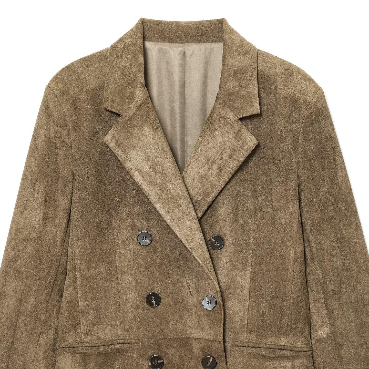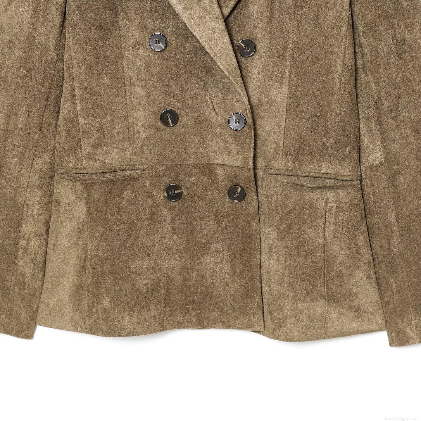 Women's Elegant Suede Blazer Jacket Fashion Solid Color Double Breasted Office Suit Coat With Pockets For Autumn Winter Casual Commuting