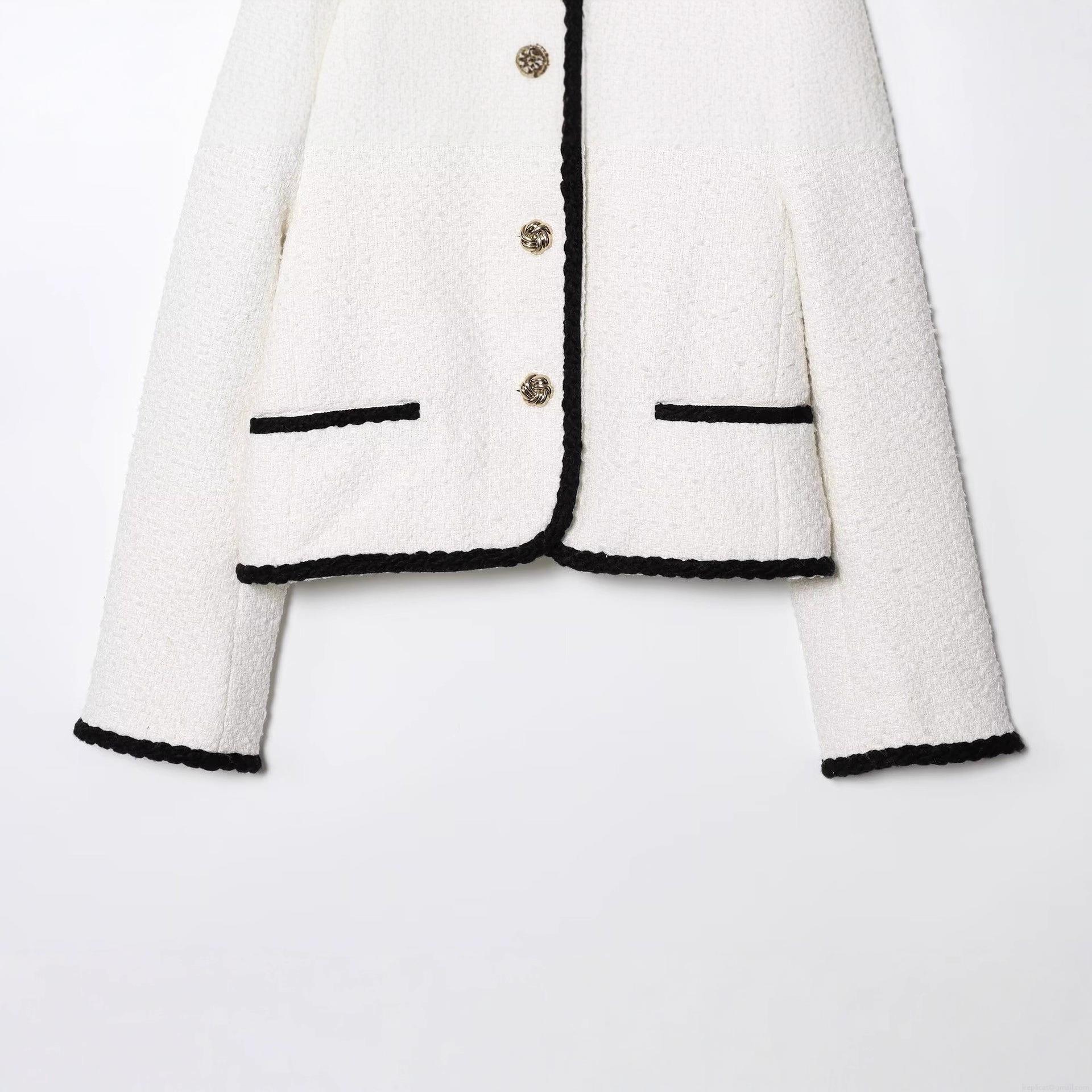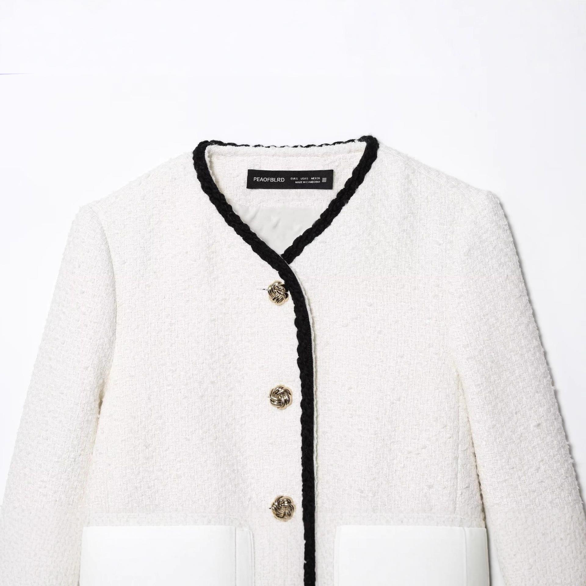 Women's Elegant Tweed Jacket Contrast Trim Gold Button Down Short Coat Loose Fit Long Sleeve Outerwear For Women Chic Chanel Style Autumn Winter Fashion