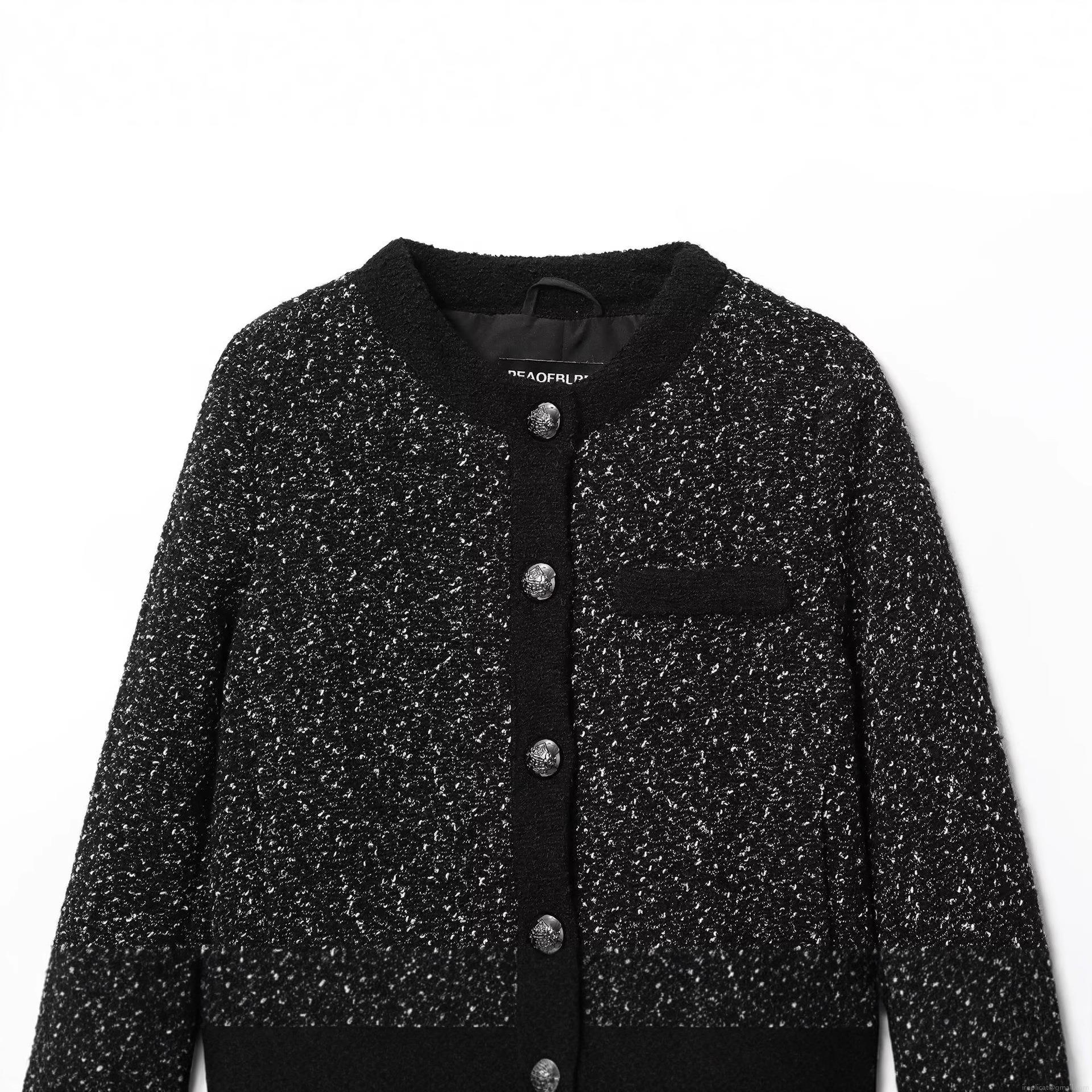 Solid Color, Pocket, Tweed, Fabric Texture, Metal Buttons