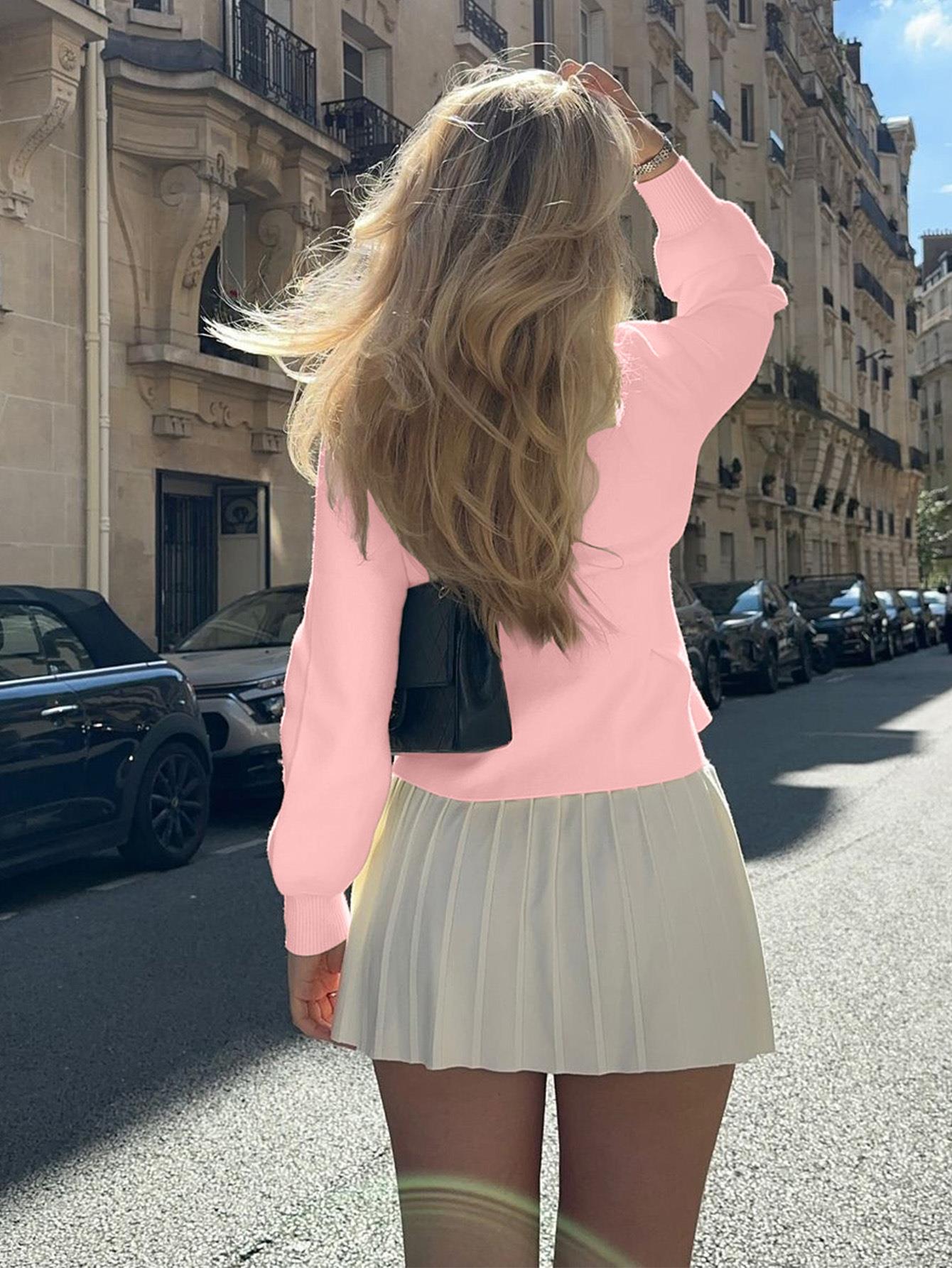 Solid Color, V-neck, Lantern Sleeves, Silver Buttons, Shell Buckle