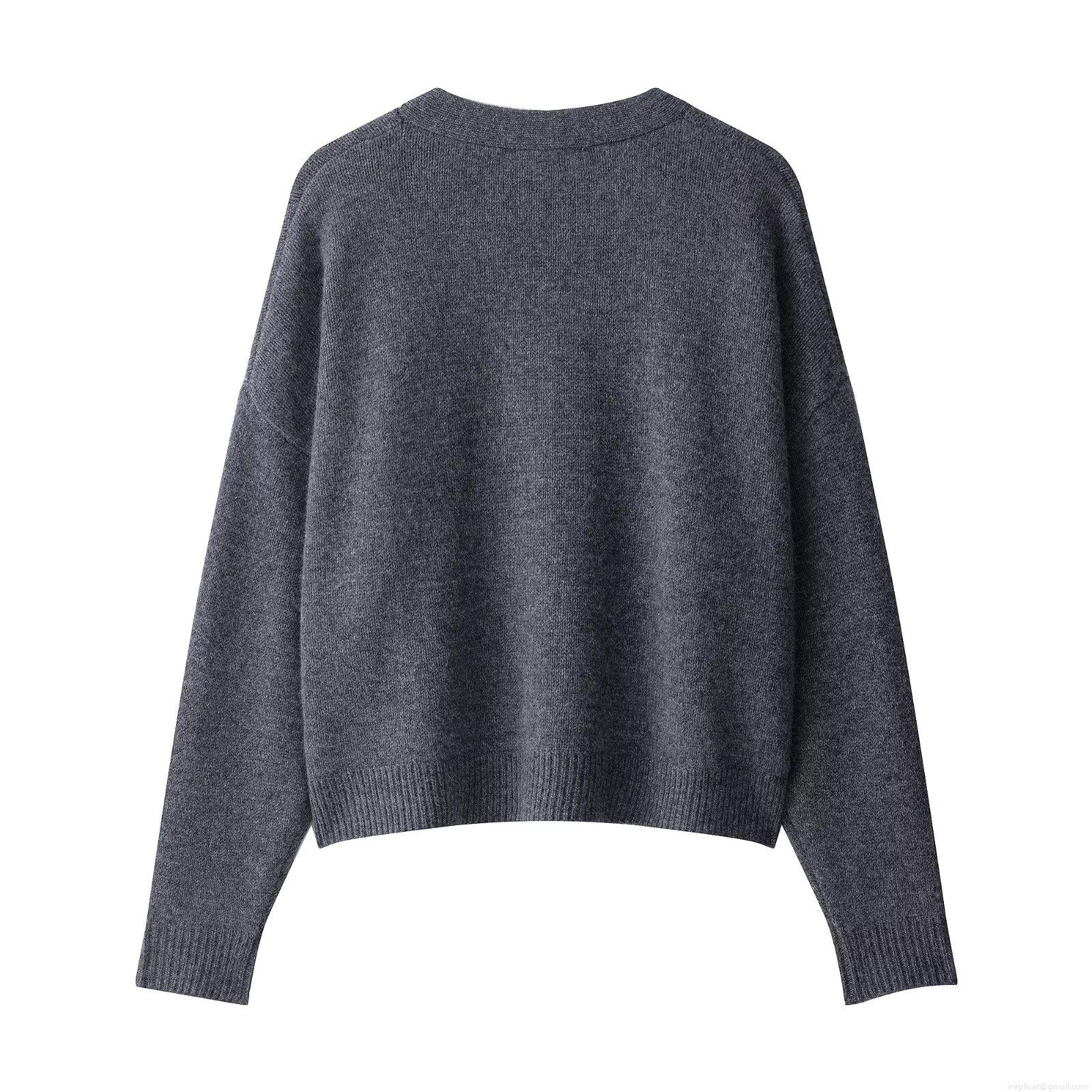 Women Mercerized Cotton V-Neck Knit Cardigan Elegant Solid Color Long...