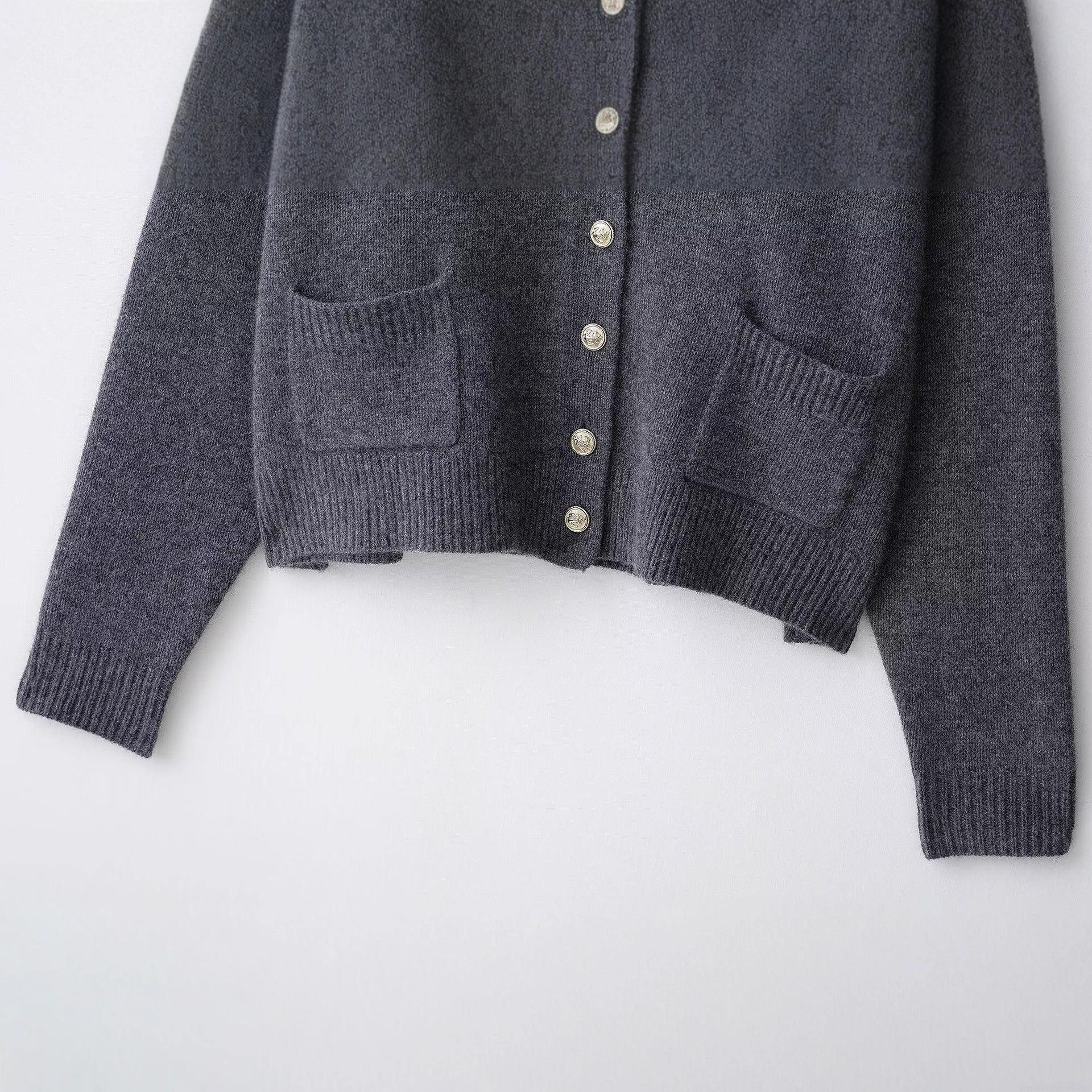Solid Color, V-neck, Ribbed Seam, Gold Buttons, Pocket