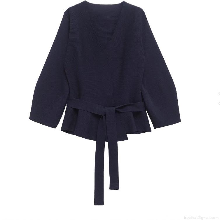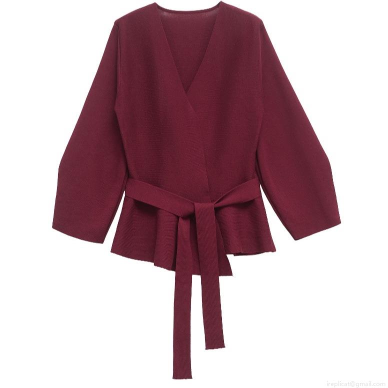 Women's Elegant V-Neck Wrap Knit Top Long Sleeve Peplum Sweater With Belt Slim Fit Solid Color Polyester Cardigan For Daily Casual Office Party