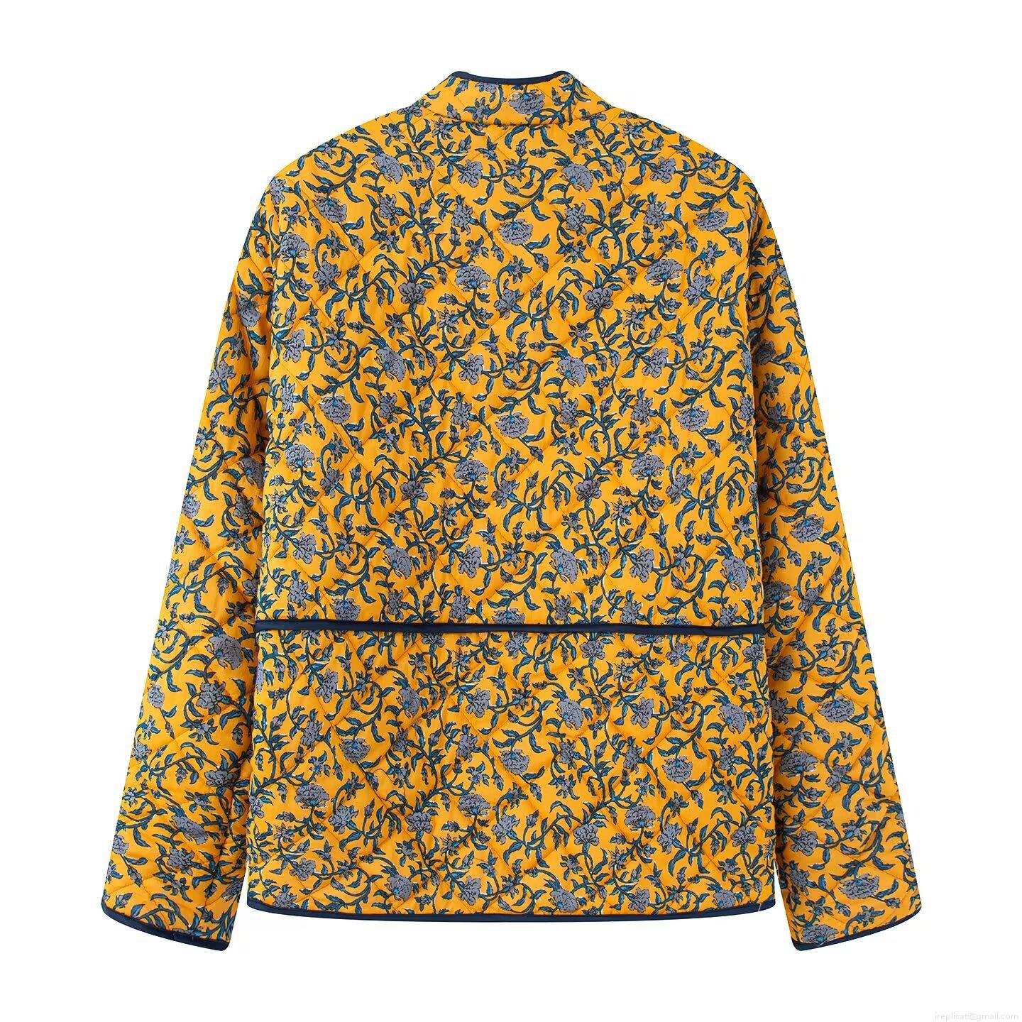 Women's Ethnic Floral Print Quilted Padded Jacket Vintage Stand Collar Long Sleeve Warm Outerwear Coat For Winter Daily Travel Comfortable Polyester Cotton Fill Lightweight Jacket For Ladies