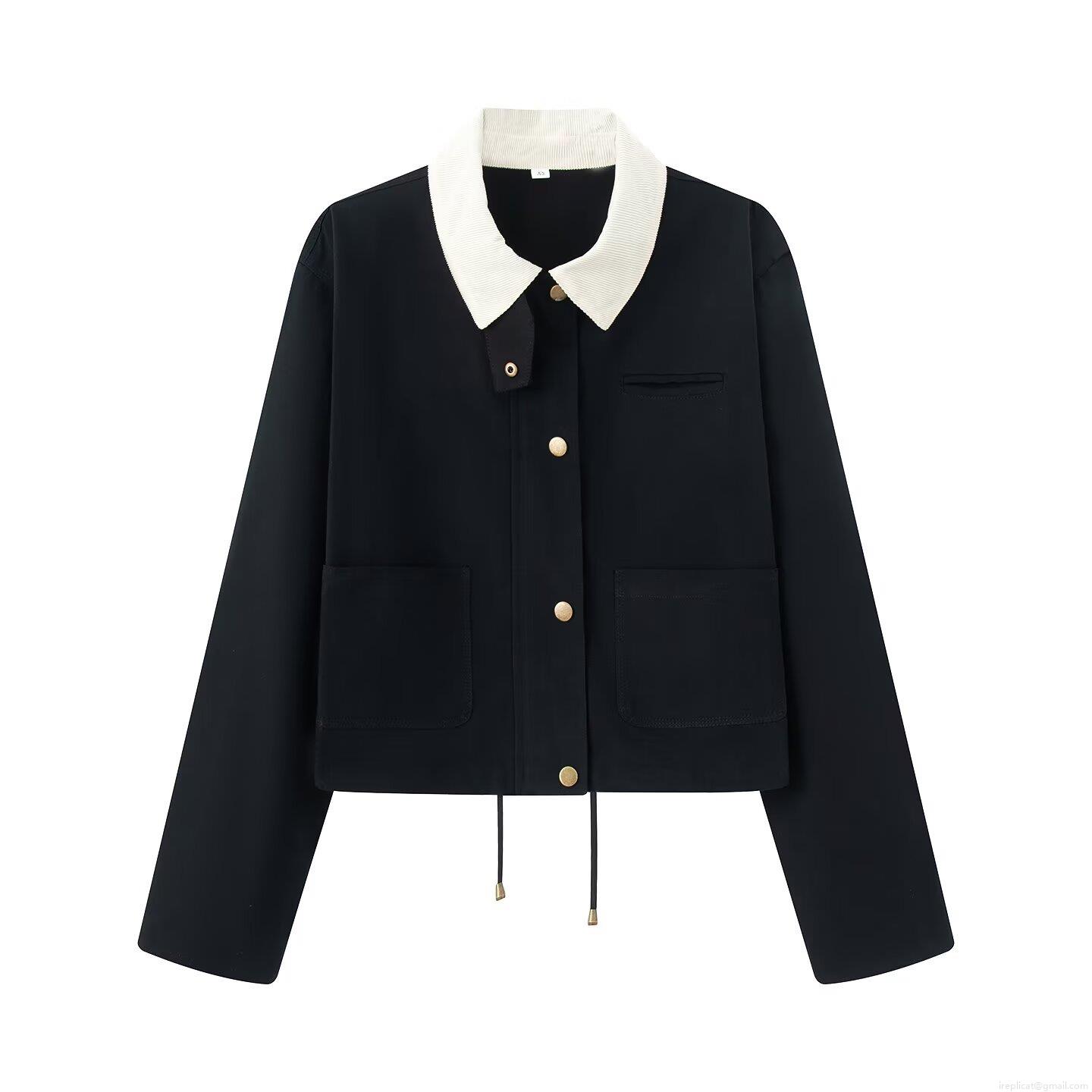 Women's European Style Color-block Corduroy Lapel Jacket Long Sleeve Patchwork Loose Outerwear With Metal Buttons And Drawstring Hem Casual Street Style Coat For Autumn