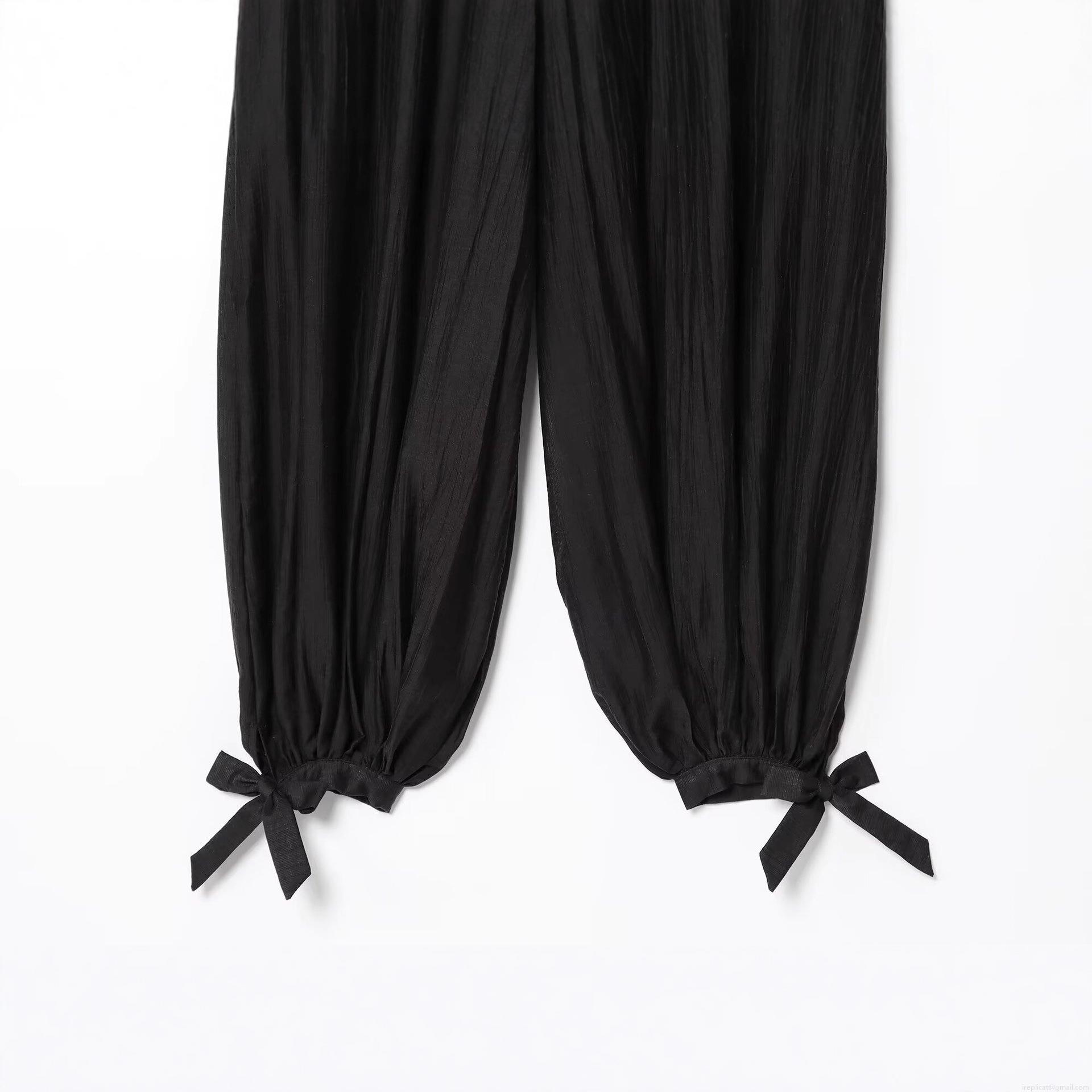 Women's European Style Pleated Lantern Pants With Bow Decor Elastic High Waist Polyester Bloomers For Daily Wear Autumn Casual Trousers