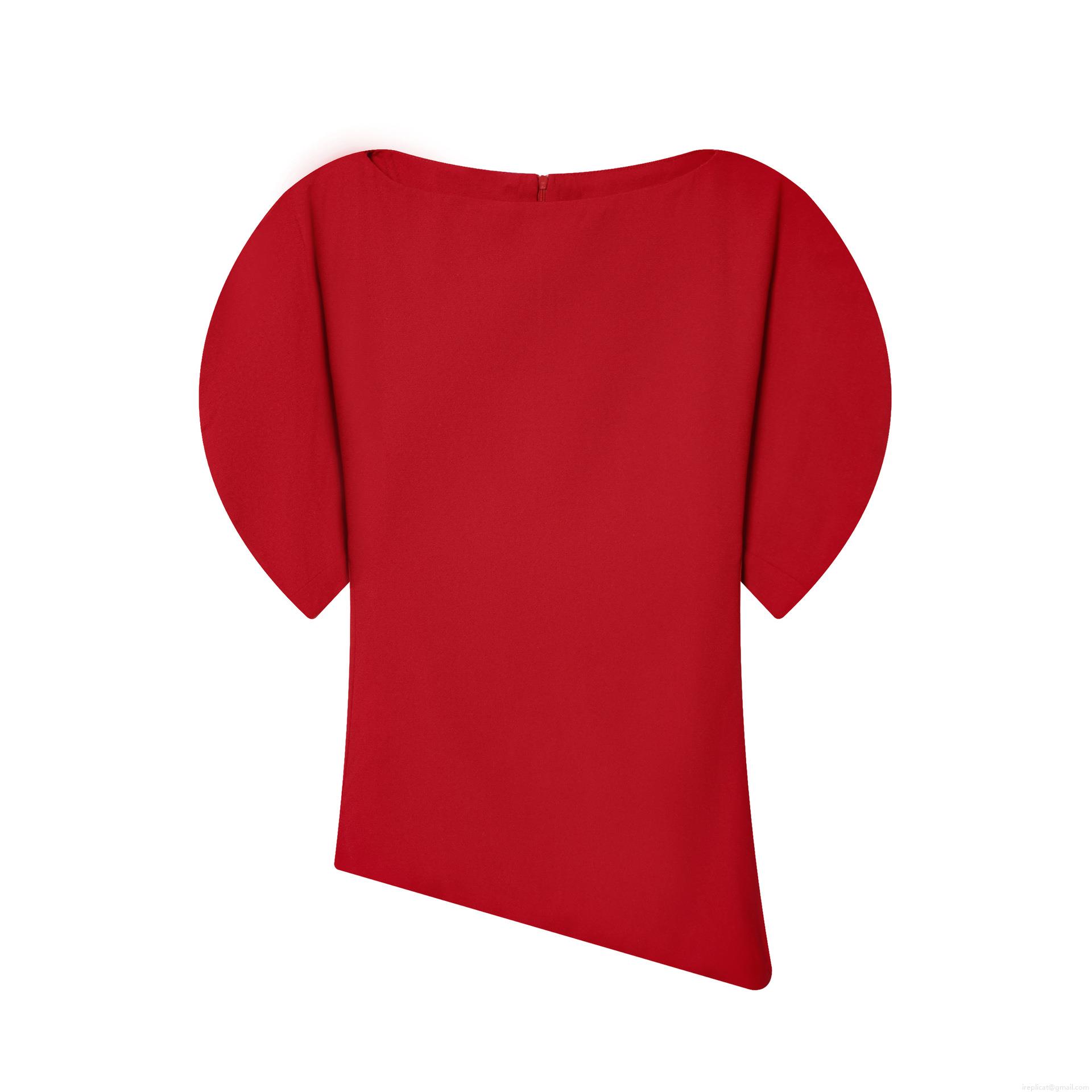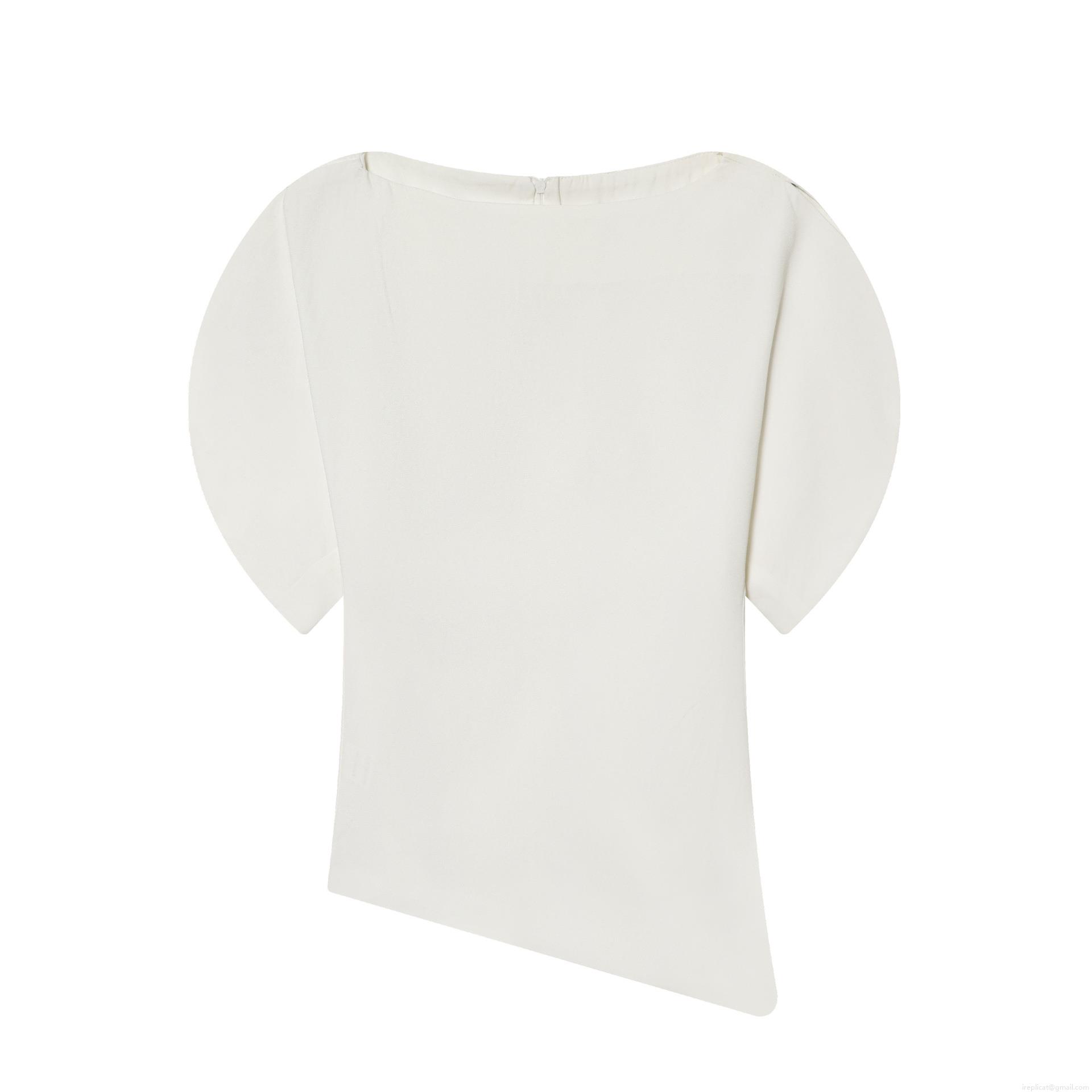 Women's Fashion Asymmetric Hem Top Elegant Boat Neck Puff Sleeve Solid Color Polyester Blouse Short Sleeve Casual Streetwear T-Shirt For Women