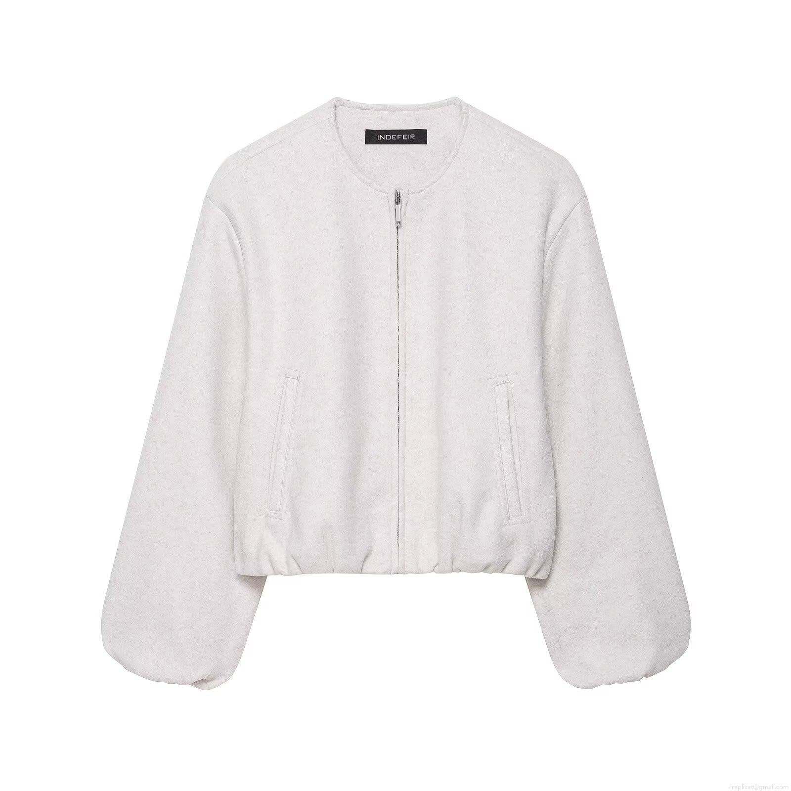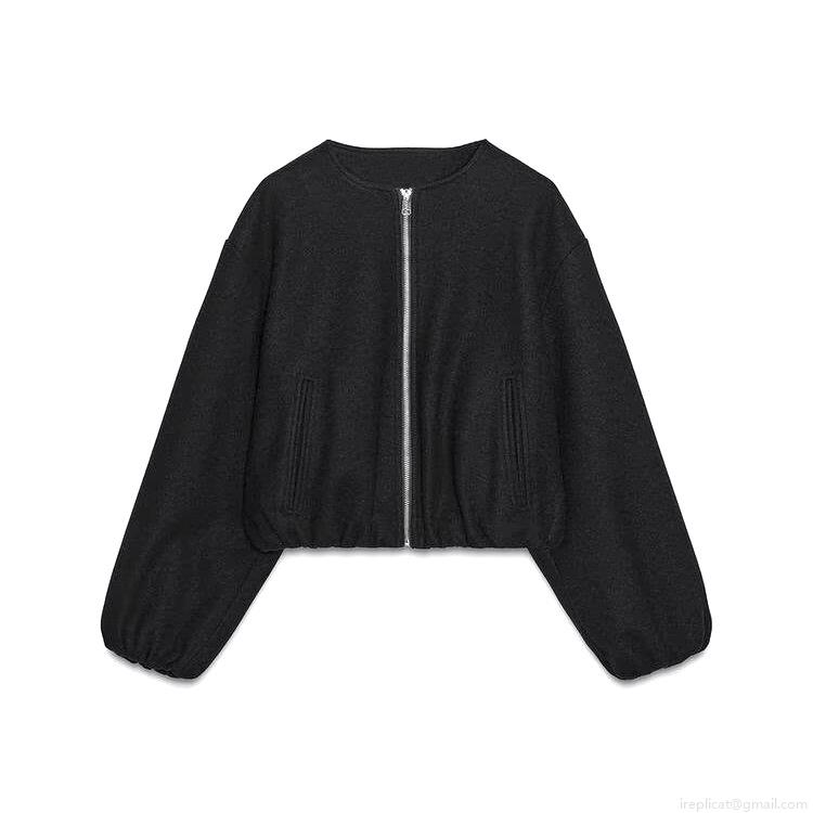Women's Fashion Casual Bomber Jacket Solid Color Woolen Zipper Outwear Short Coat With Pockets For Autumn Winter Daily Wear