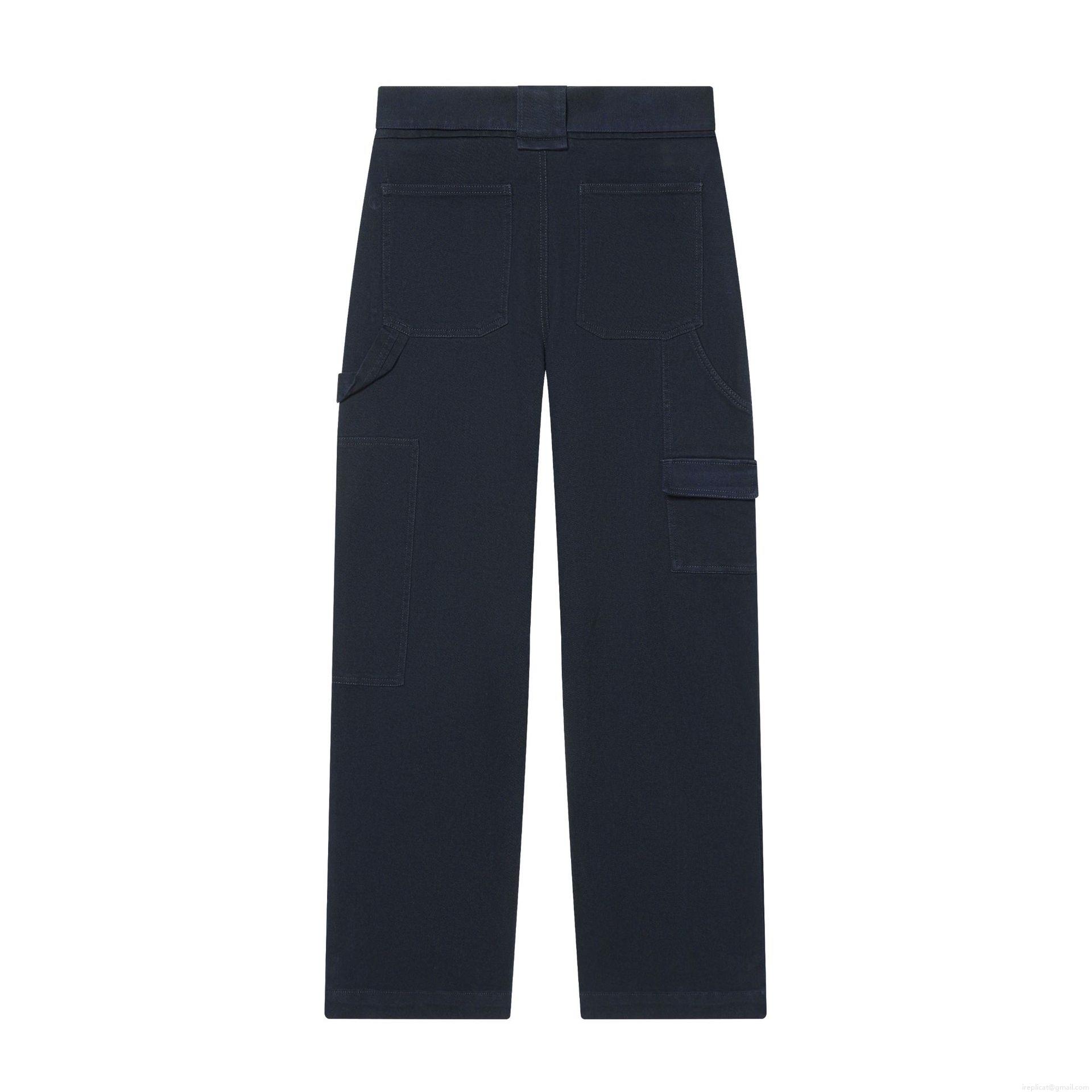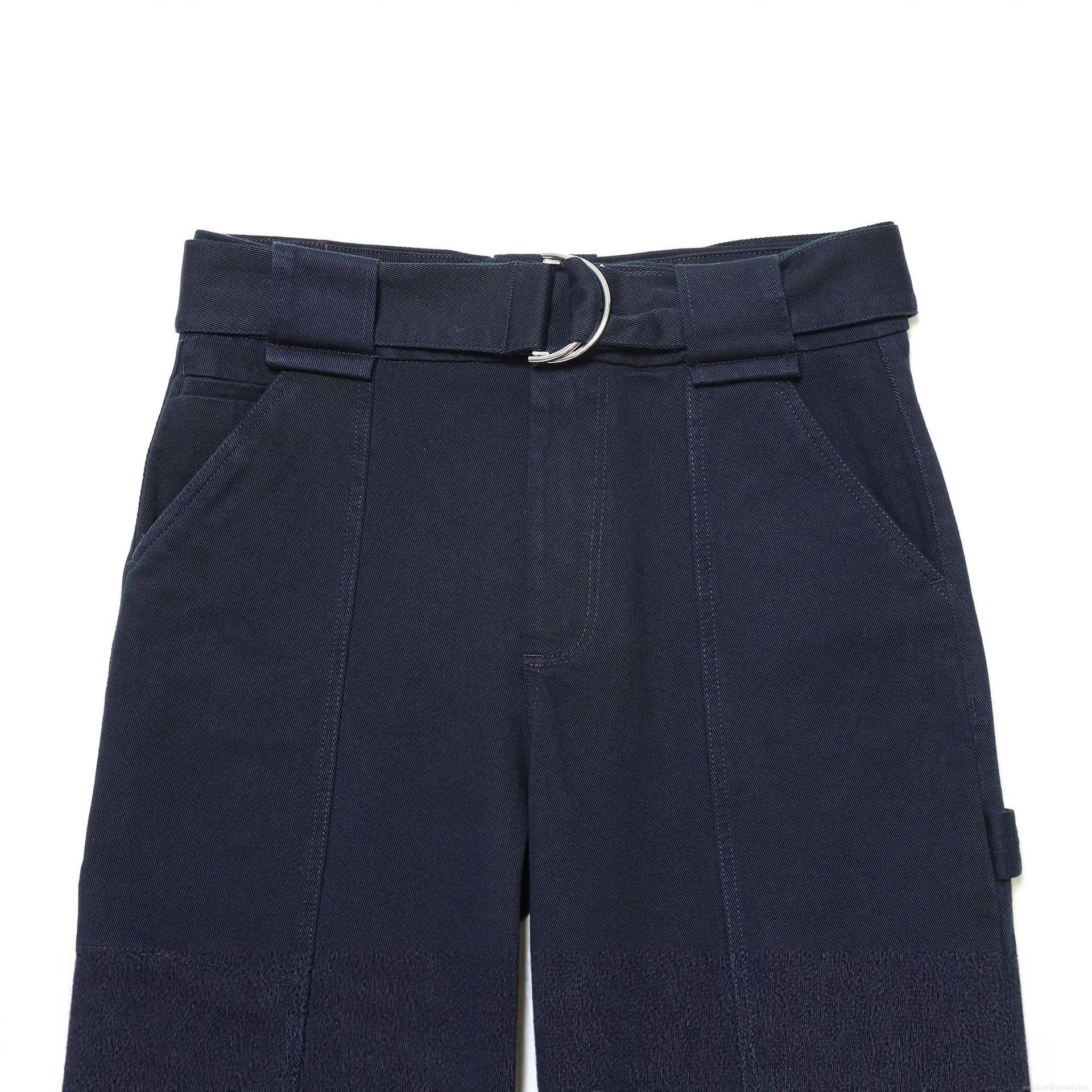 Women's Fashion Casual Cargo Pants With Belt High Waist Deep Blue Twill Straight Leg Trousers Multi Pockets Streetwear Lady Utility Work Pants