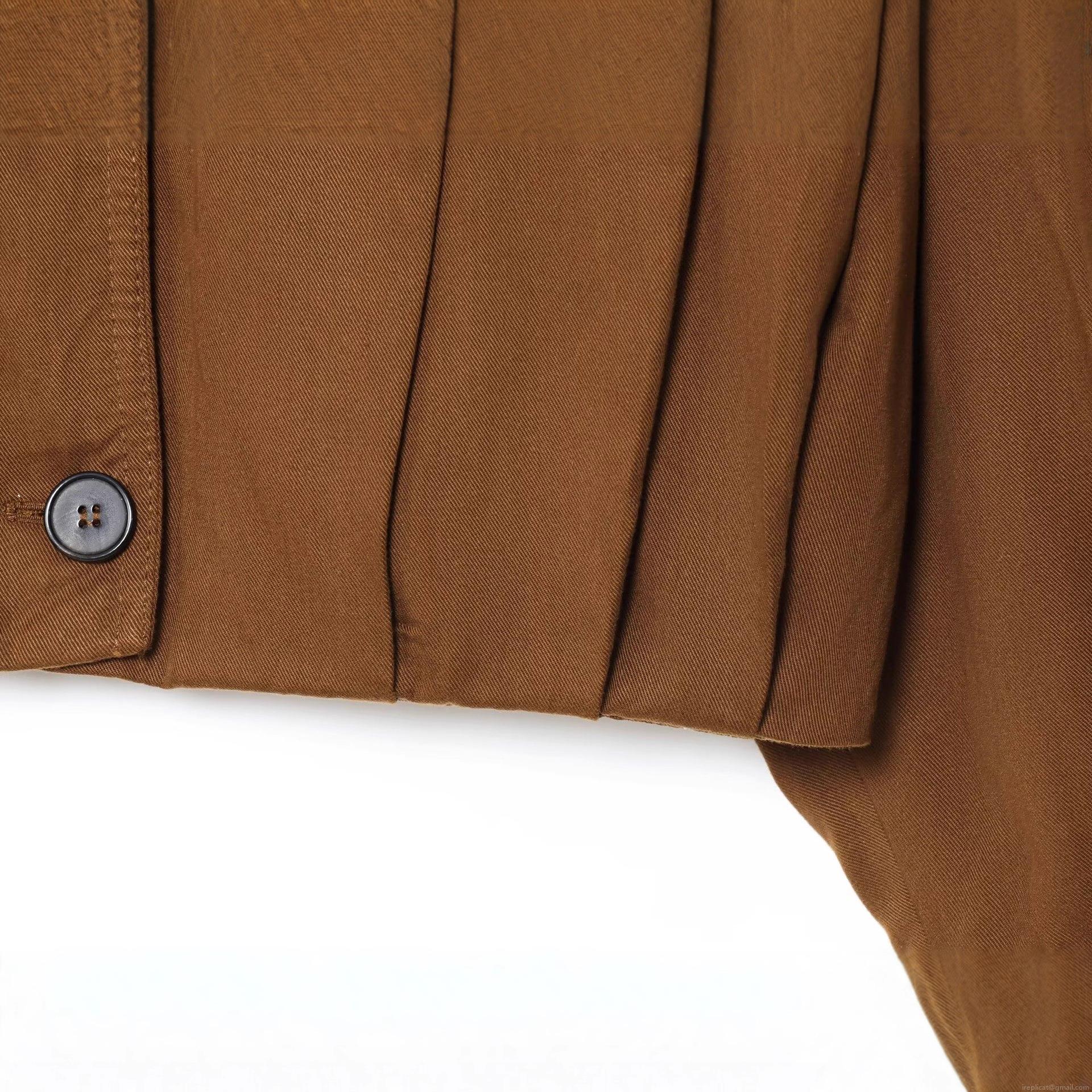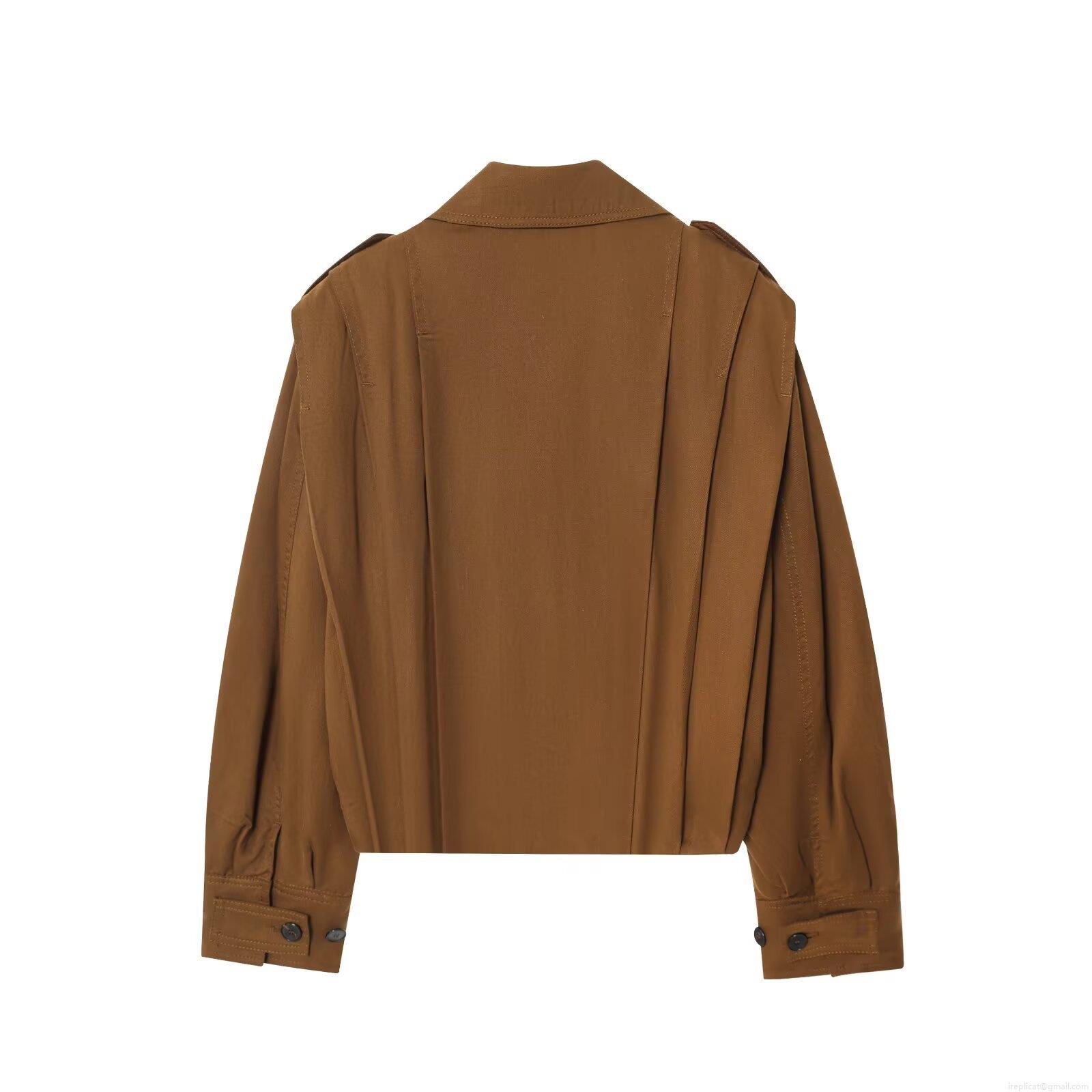 Women's Fashion Casual Lapel Crop Jacket Solid Color Long Sleeve Pleated Shirt Jacket With Shoulder Straps Single Breasted Elegant Outerwear For Spring Autumn
