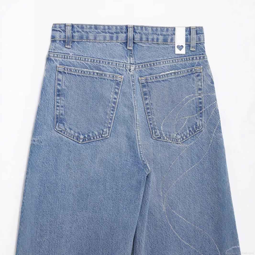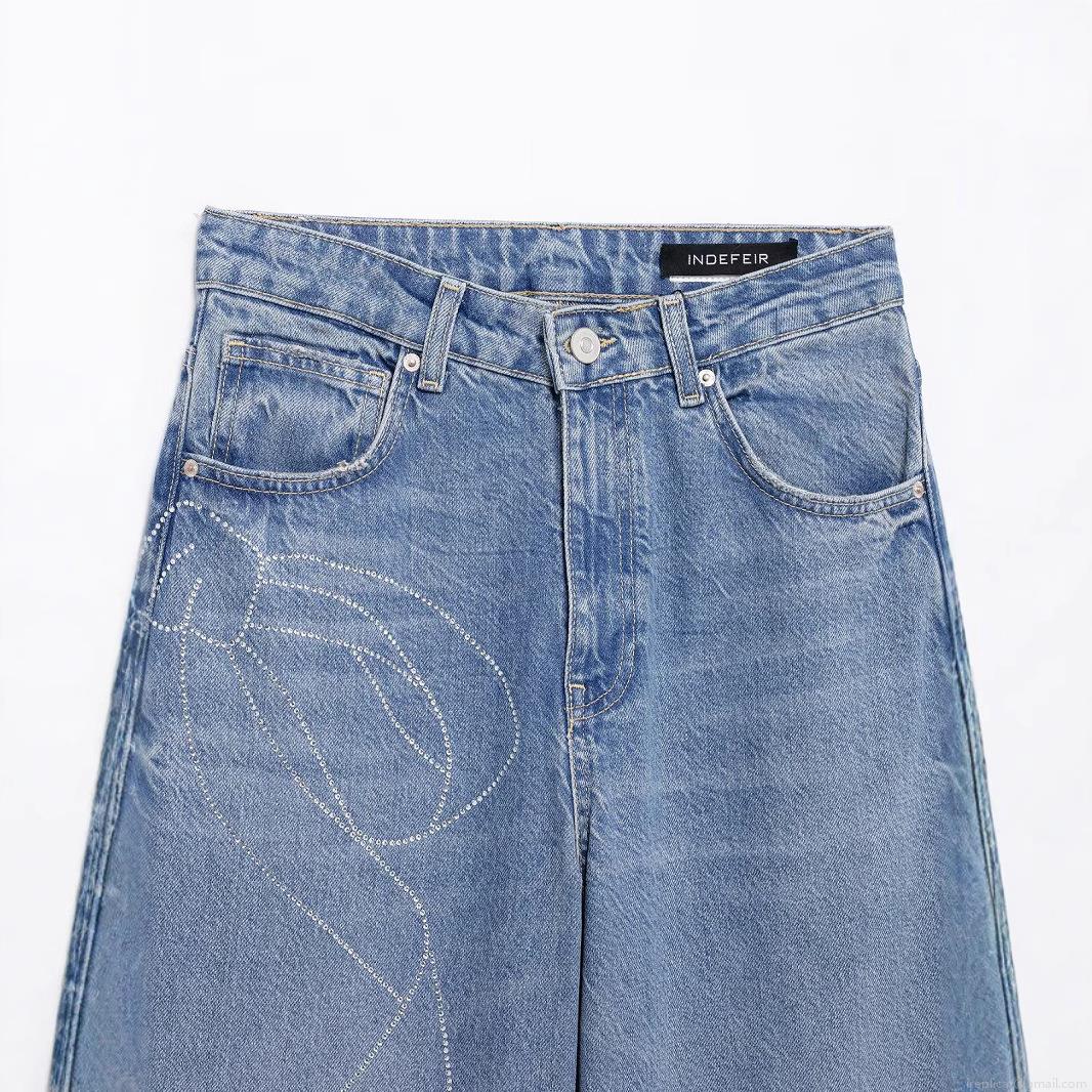 Women's Fashion Casual Rhinestone Bow High Waist Wide Leg Jeans Loose Fit Denim Pants Streetwear Cotton Blend Long Trousers
