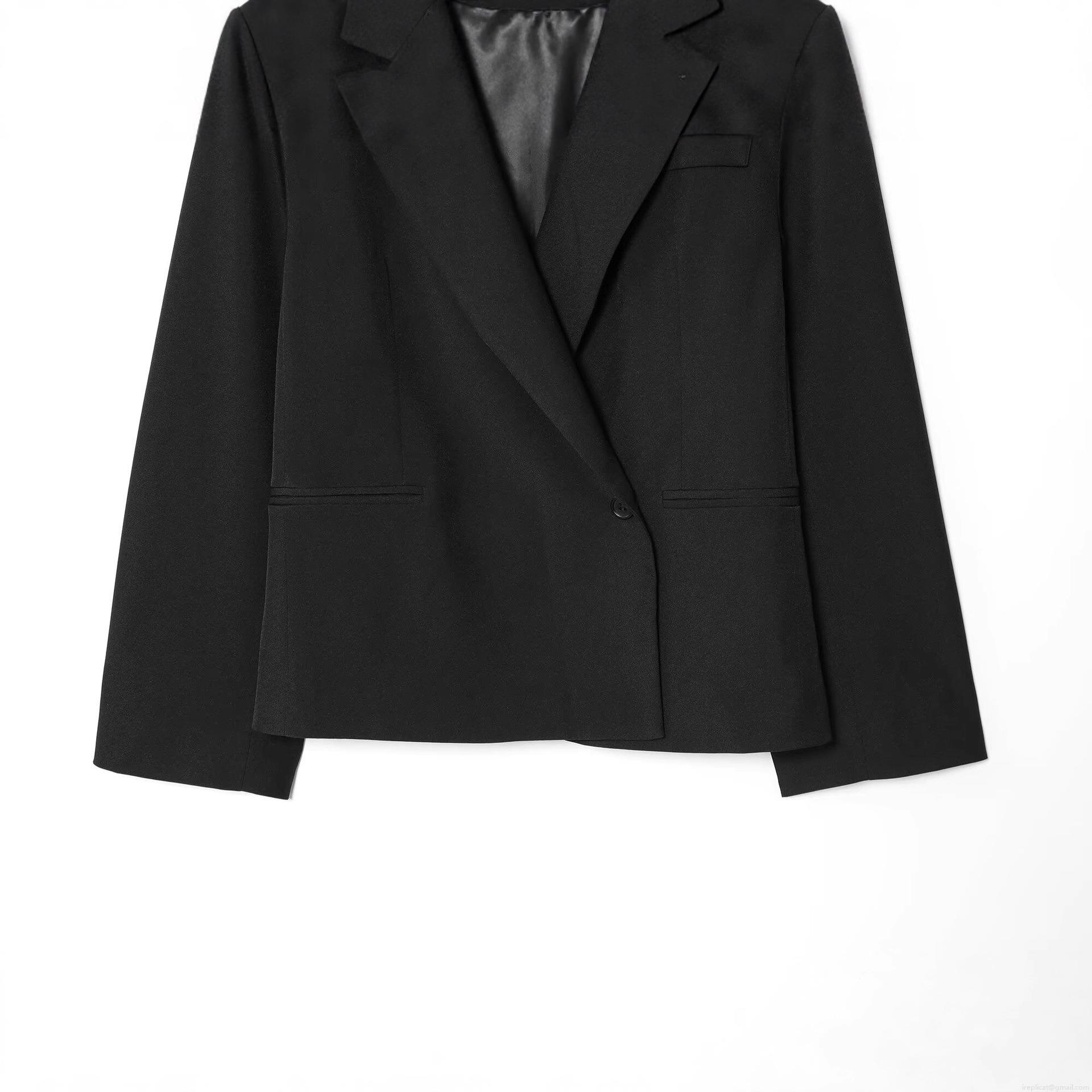 Women's Fashion Casual Solid Black Lapel Blazer Jacket Single Button Long Sleeve Office Commute Polyester Twill Outerwear For Ladies