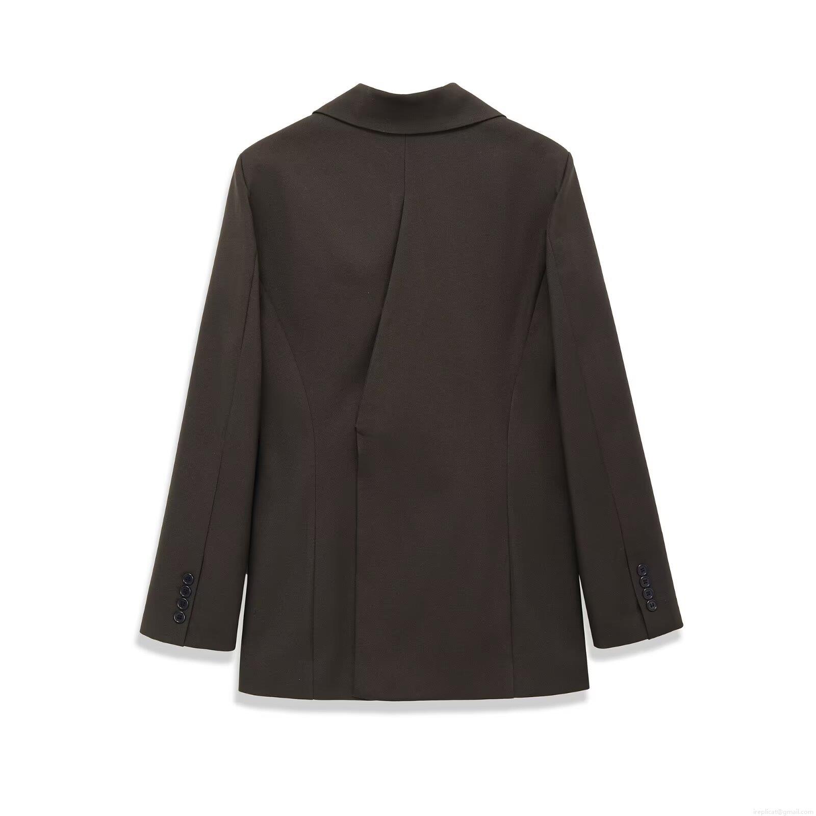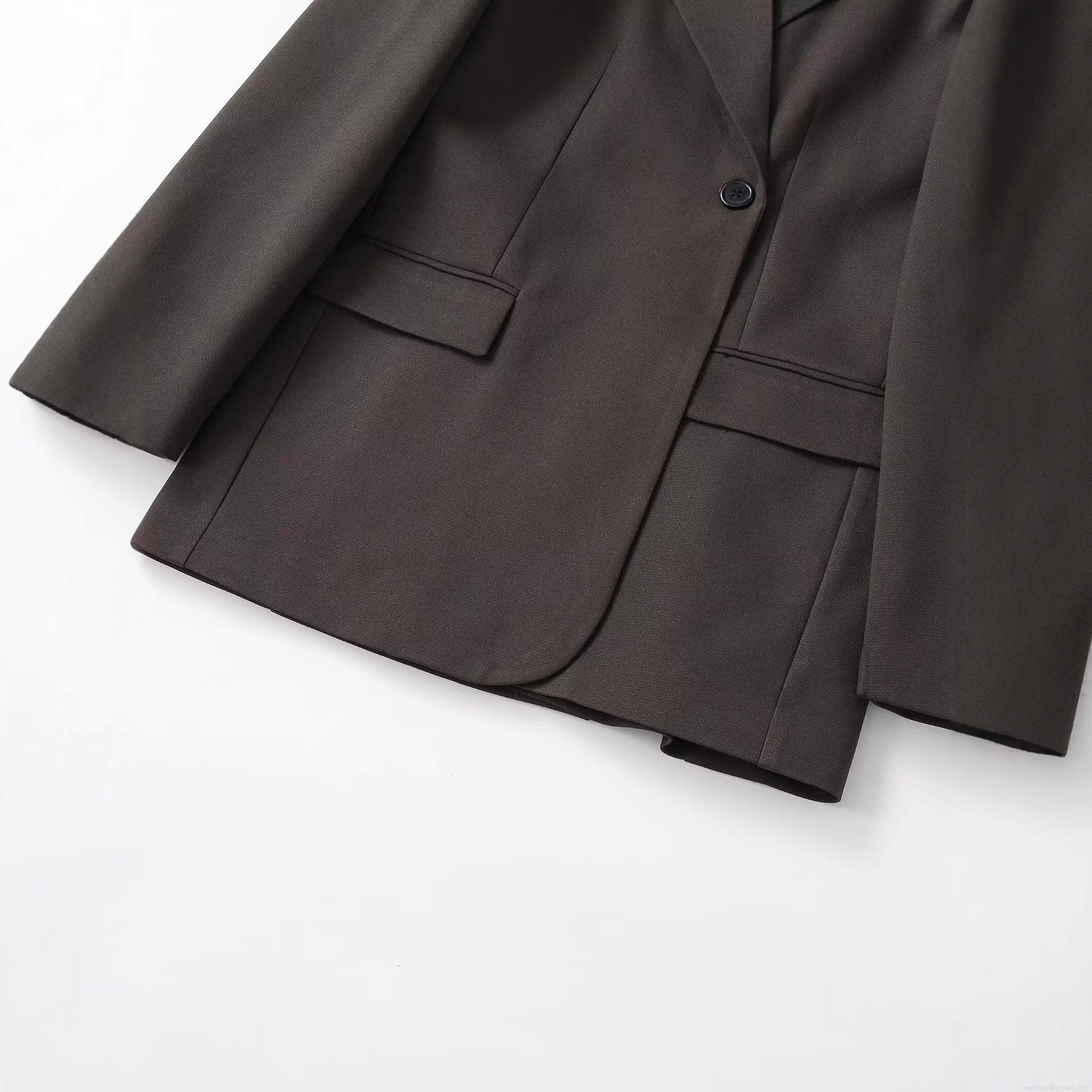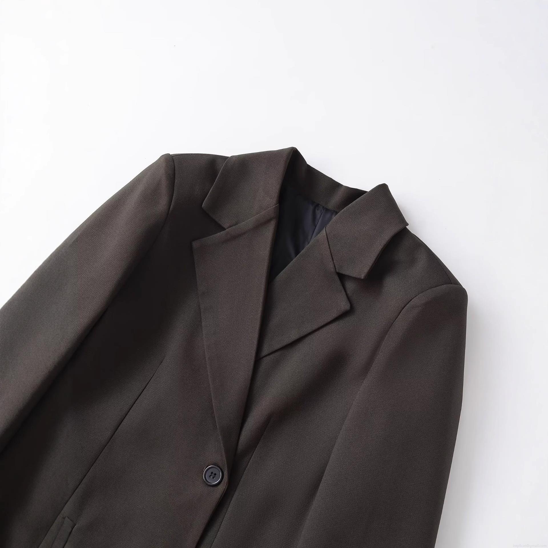 Women's Fashion Casual Solid Color Polyester Blazer Notched Lapel Single Button Office Lady Long Sleeve Jacket Outerwear For Women