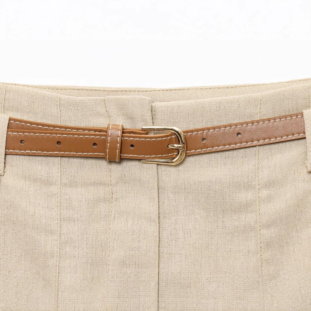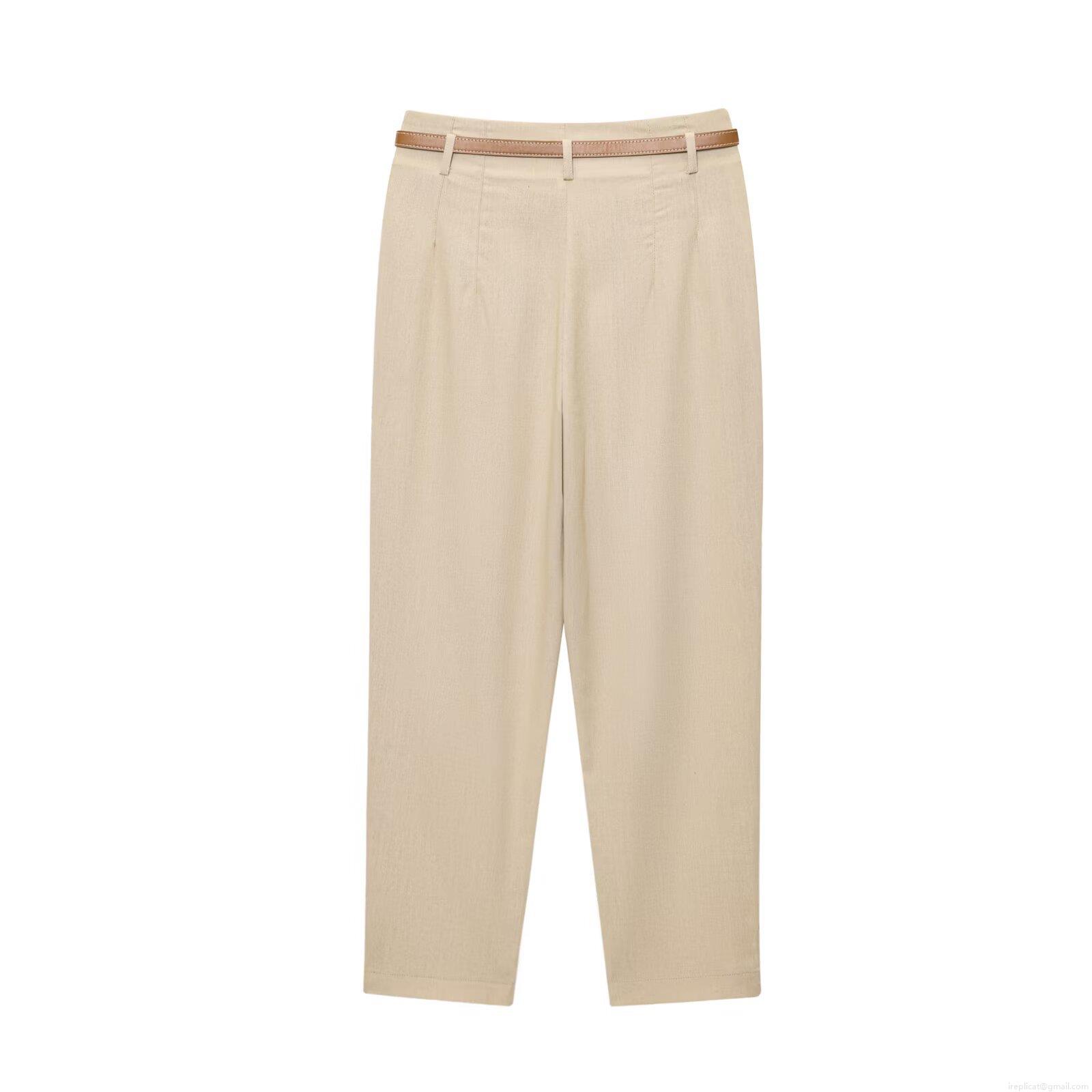 Women's Fashion Casual Straight Leg Trousers With Brown Belt High Waist Solid Color Polyester Blend Pants For Office Streetwear Daily