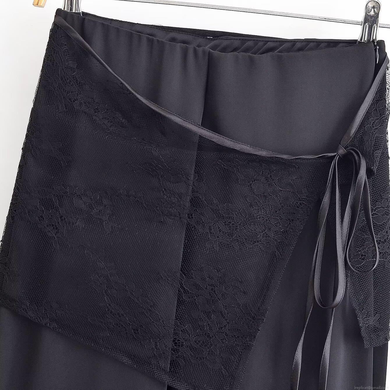 Women's Fashion Casual Wide Leg Pants Polyester Lace Waist Overlay With Satin Ribbon Tie Irregular Hem Loose Fit Trousers For Daily Office Women Winter Clothing